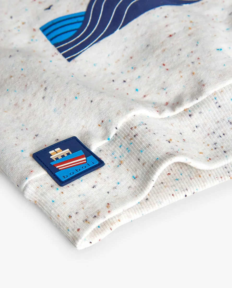 Мягкая флисовая толстовка для мальчика белого цвета, разработанная для обеспечения тепла и комфорта в осенне-зимний период. Очаровательный принт с маяком и солнцем добавляет веселый и оригинальный штрих в детский гардероб. Круглый вырез и длинные рукава обеспечивают защиту в холодные дни, а размерный ряд варьируется от 12 месяцев до 10 лет. Эта универсальная вещь легко сочетается с джинсами или брюками, создавая повседневный и жизнерадостный образ, подходящий для любого случая.
