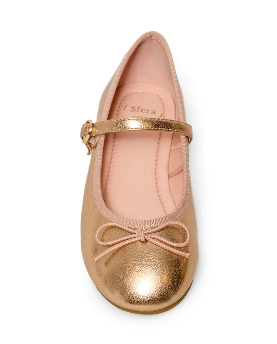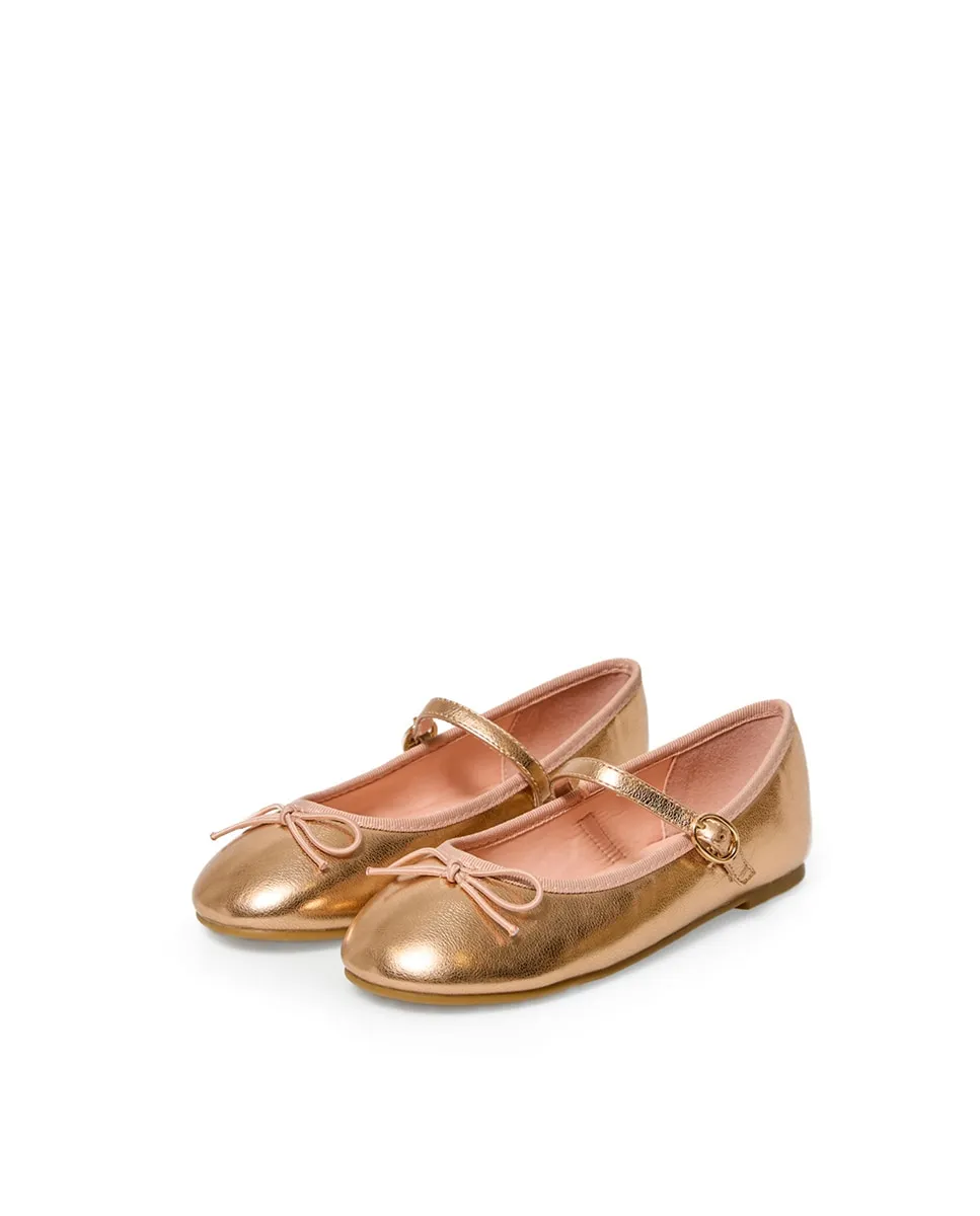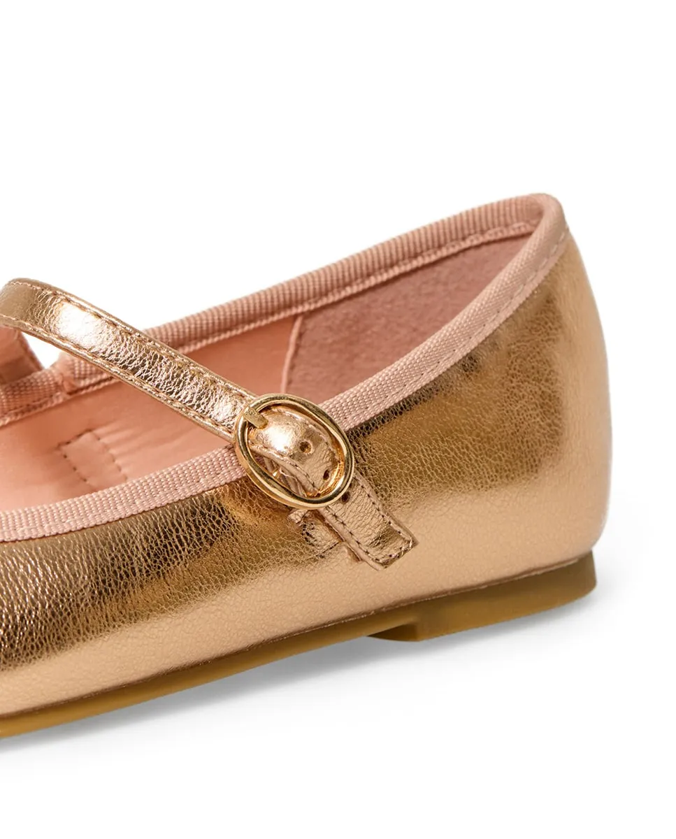 Балерина золотого цвета с застежкой на ремешке на подъеме.