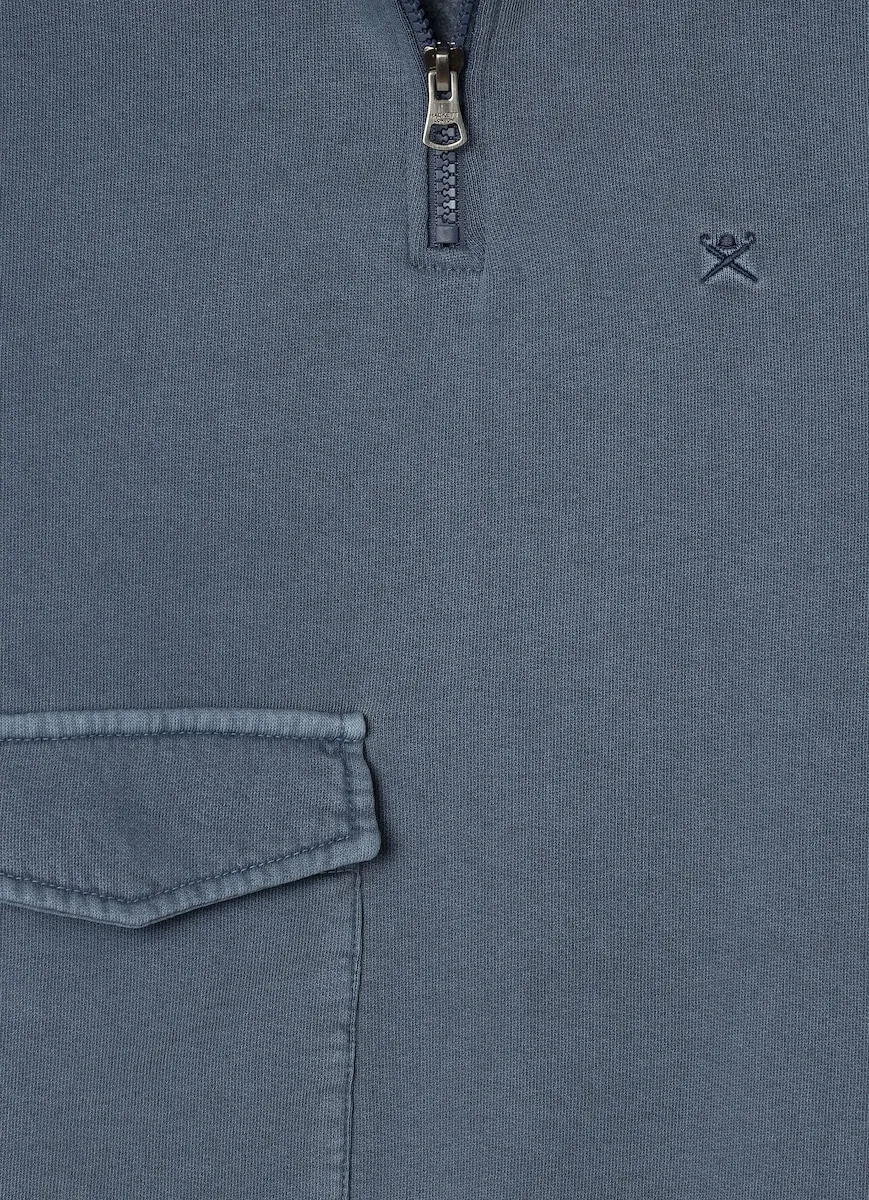 Свитшот с эффектом стирки, с застежкой на молнию до середины, карманами в стиле карго и вышитым логотипом на передней части.