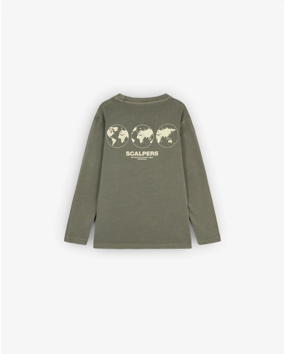 Детский хлопковый свитшот без капюшона с принтом на спине Scalpers, хаки