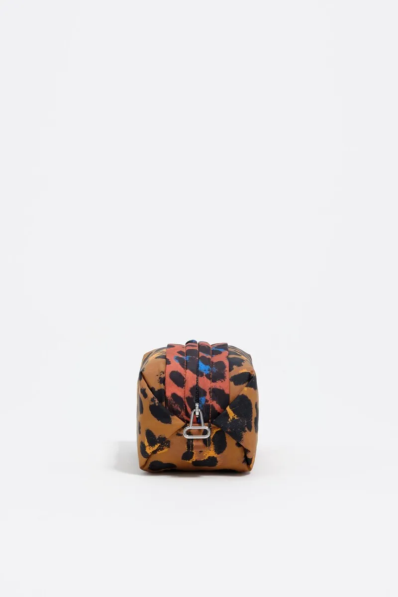 Неcесер из нейлона с леопардовым принтом в коричневых тонах от бренда BIMBA Y LOLA. Этот модный аксессуар для женщин принадлежит к коллекции Осень-Зима 2025 и относится к категории косметичек и неcесеров. Дизайн украшен леопардовым принтом, который придает изделию изысканность и смелость. Состав неcесера: 80% полиамид и 15% полиэстер, обеспечивающий долговечность и прочность. Размеры изделия: высота 14,0 см, длина 7,0 см и ширина 8,5 см, что обеспечивает удобный размер для хранения личных вещей. Неcесер выполнен в коричневой цветовой палитре с дополнительным коричневым оттенком, следуя модной тенденции animal print.