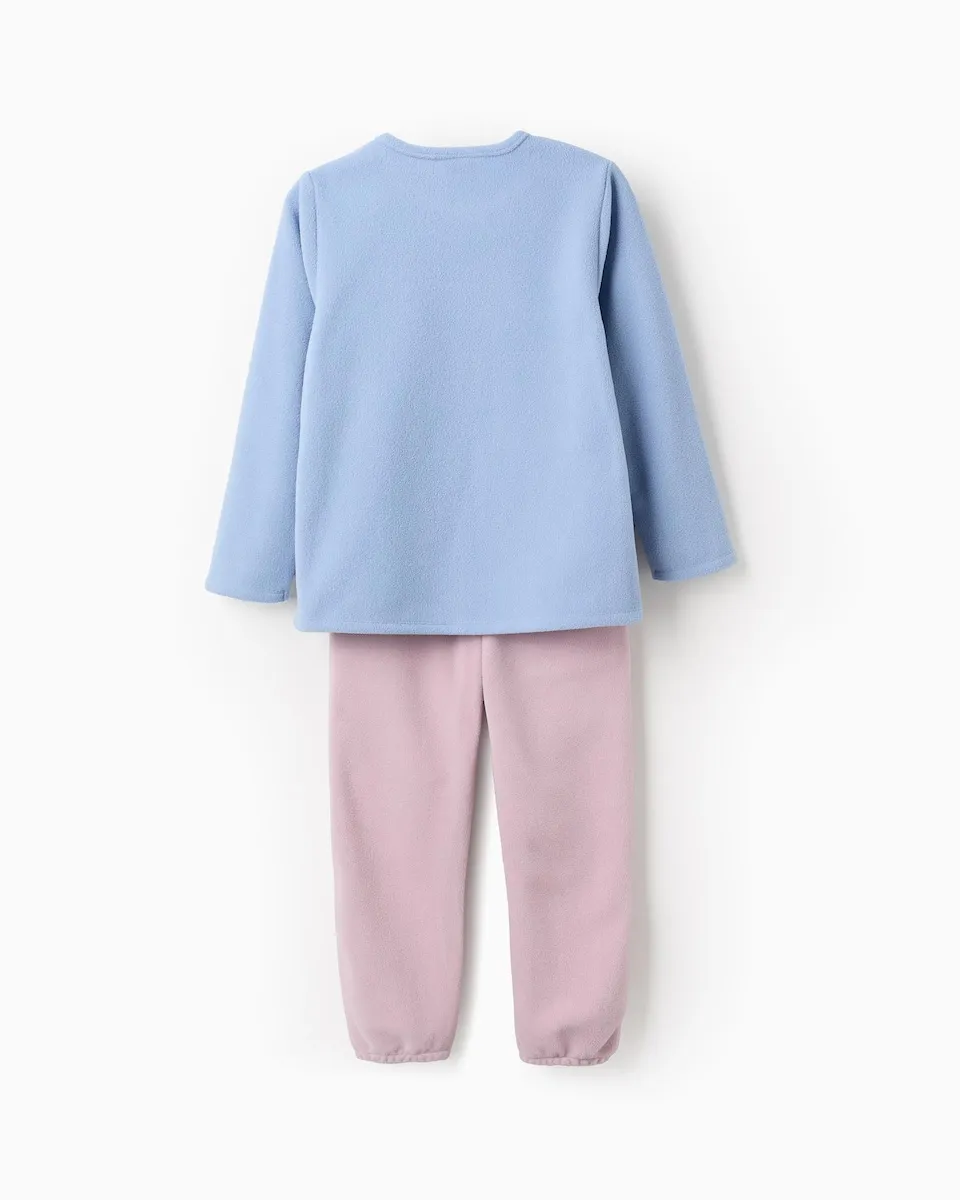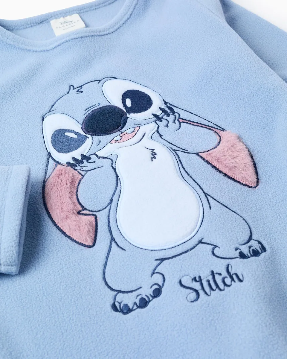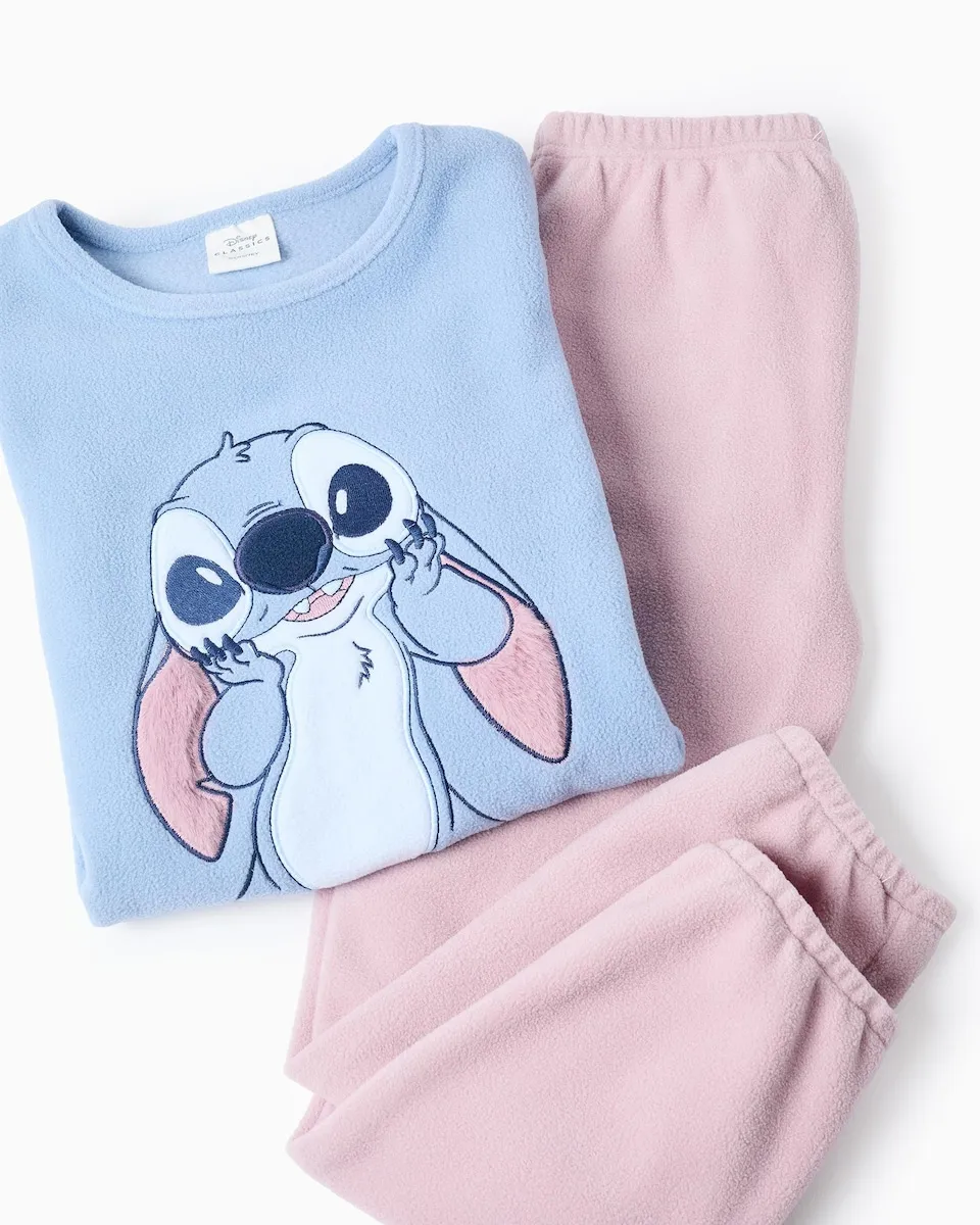 Пижама для девочки в синих и розовых тонах, из флиса для большего комфорта. Джемпер с вышивкой Ститча и пушистыми ушками. Однотонные брюки с эластичным подолом для идеальной посадки. Идеально подходит для зимних ночей.