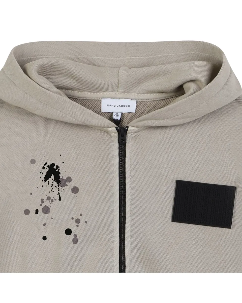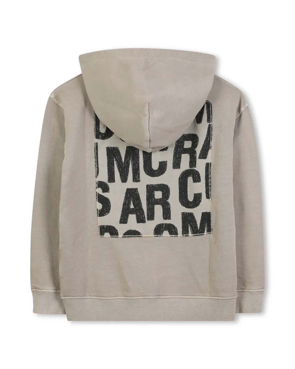 Созданный для молодых начинающих художников, этот кардиган с капюшоном имеет городской и оригинальный вид. Мягкая флисовая ткань подчеркнута яркими крапинами краски, а силиконовый логотип MARC JACOBS добавляет современный акцент. Концовый кант из саржи на спине, украшенный мотивом "MONOGRAMME", завершает этот графический предмет с ярким характером.