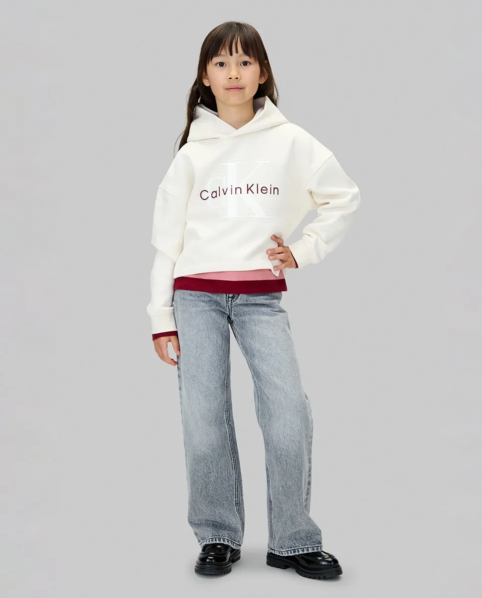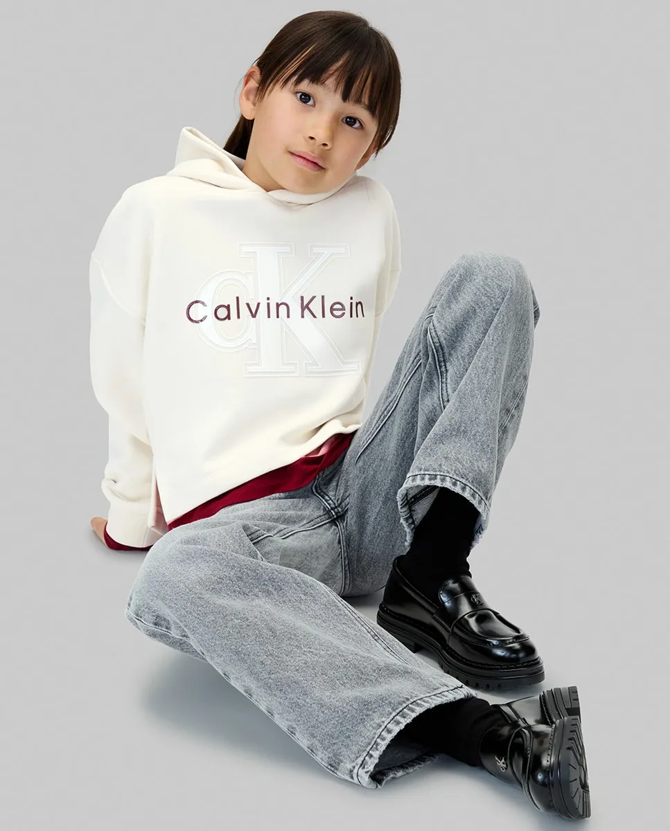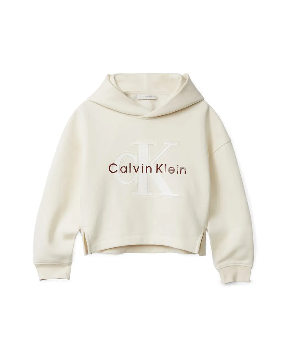Детская толстовка, выполненная из смеси хлопка и полиэстера, с капюшоном и логотипом CK с глиттером.