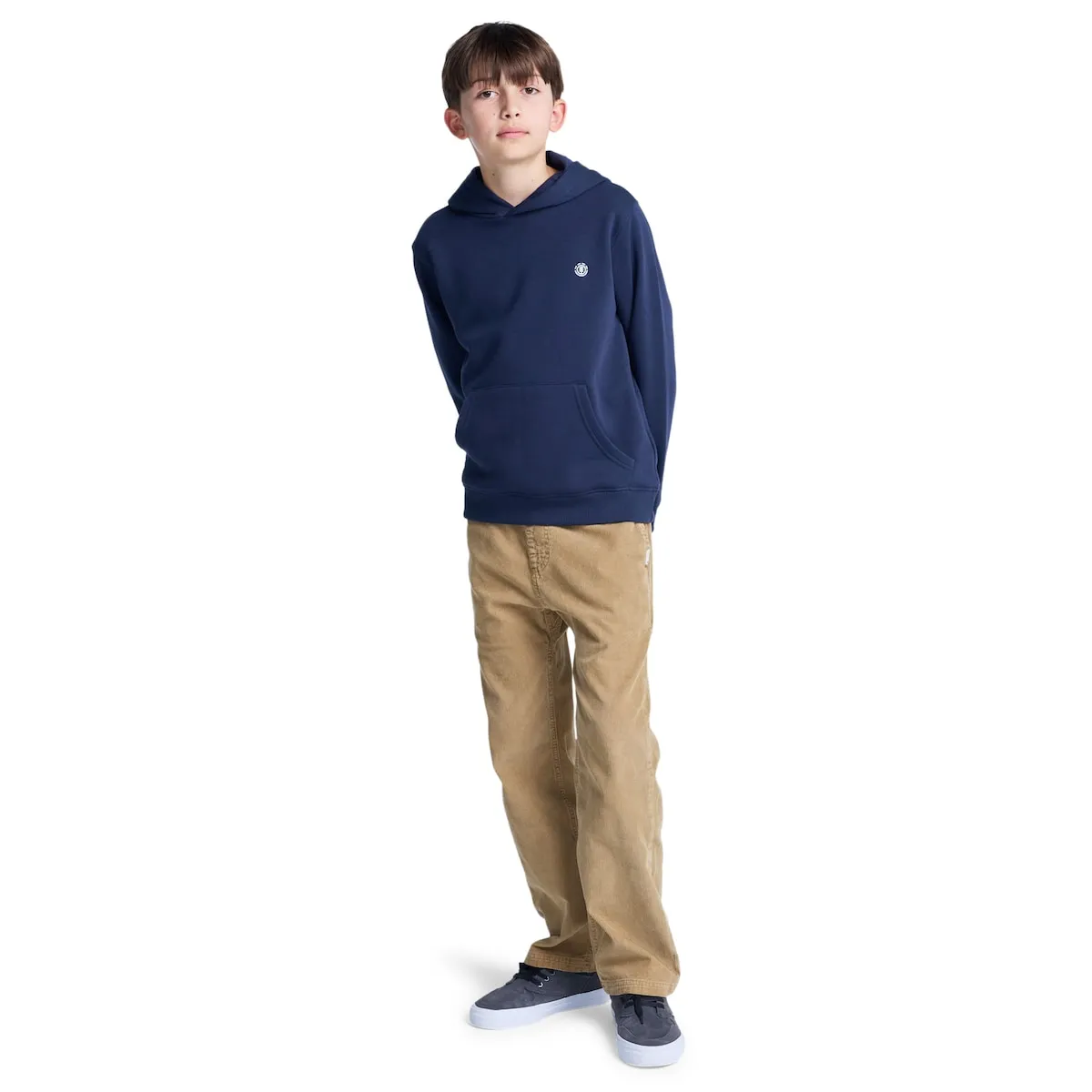 Худи с капюшоном для детей 8-16 лет. Особенности включают: Ткань: обычный хлопок с переработанным хлопком и полиэстером [280 г/м²], Прямой крой, Внутренняя сторона с начесом, Большой карман, Капюшон с подкладкой из трикотажа, Вышивка бренда на груди.