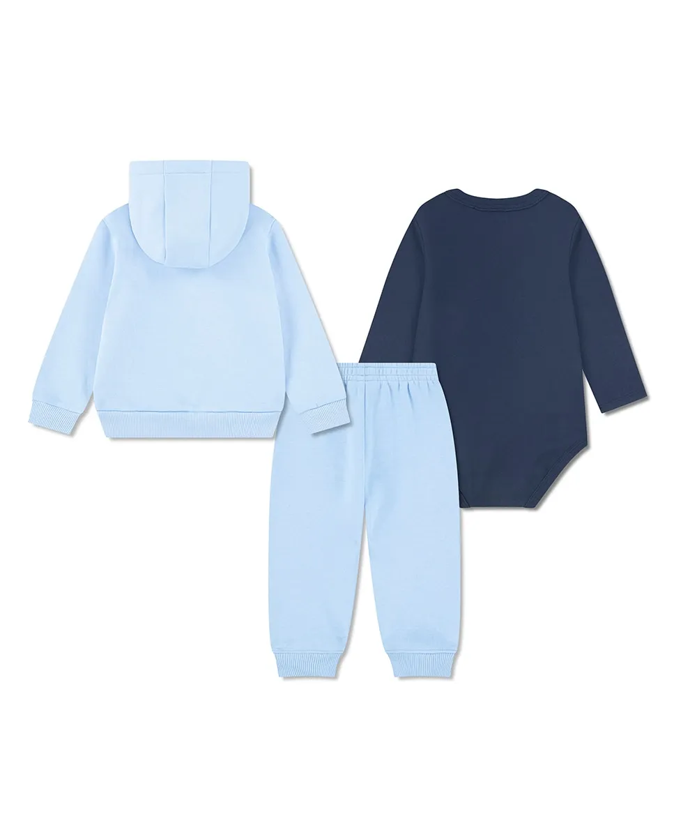 Оснастите вашего малыша спортивно-шикарным стилем Lacoste с этим комплектом из 3-х предметов, который включает в себя боди из экологичного хлопка, уютную толстовку с капюшоном из экологичного хлопка/переработанного полиэстера и брюки для согласованного образа. Этот длинный трикотажный свитер с рукавами оснащен графическим логотипом крокодила, опущенными плечами и застежками на кнопках в области шагового шва для удобной смены одежды. Толстовка с капюшоном имеет застежку-молнию по всей длине, что облегчает наслаивание, а соответствующие брюки имеют удобный эластичный пояс и зауженные штанины для ощущения комфорта и безопасности.