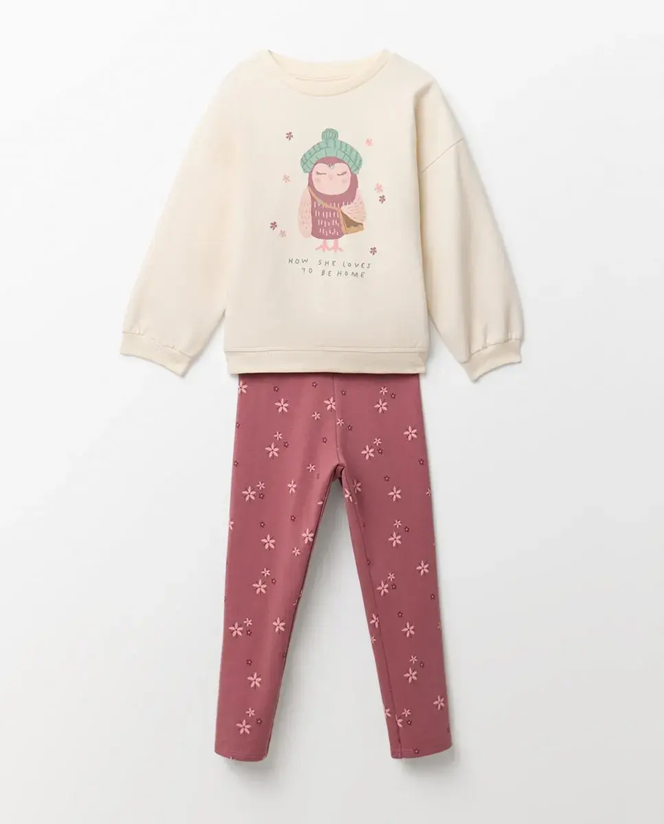 Комплект толстовки и леггинсов с теплой подкладкой и принтом