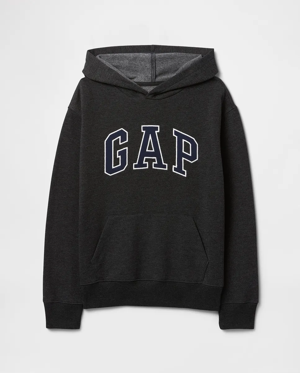 Детская толстовка с капюшоном и фронтальным логотипом Gap, темно-серый