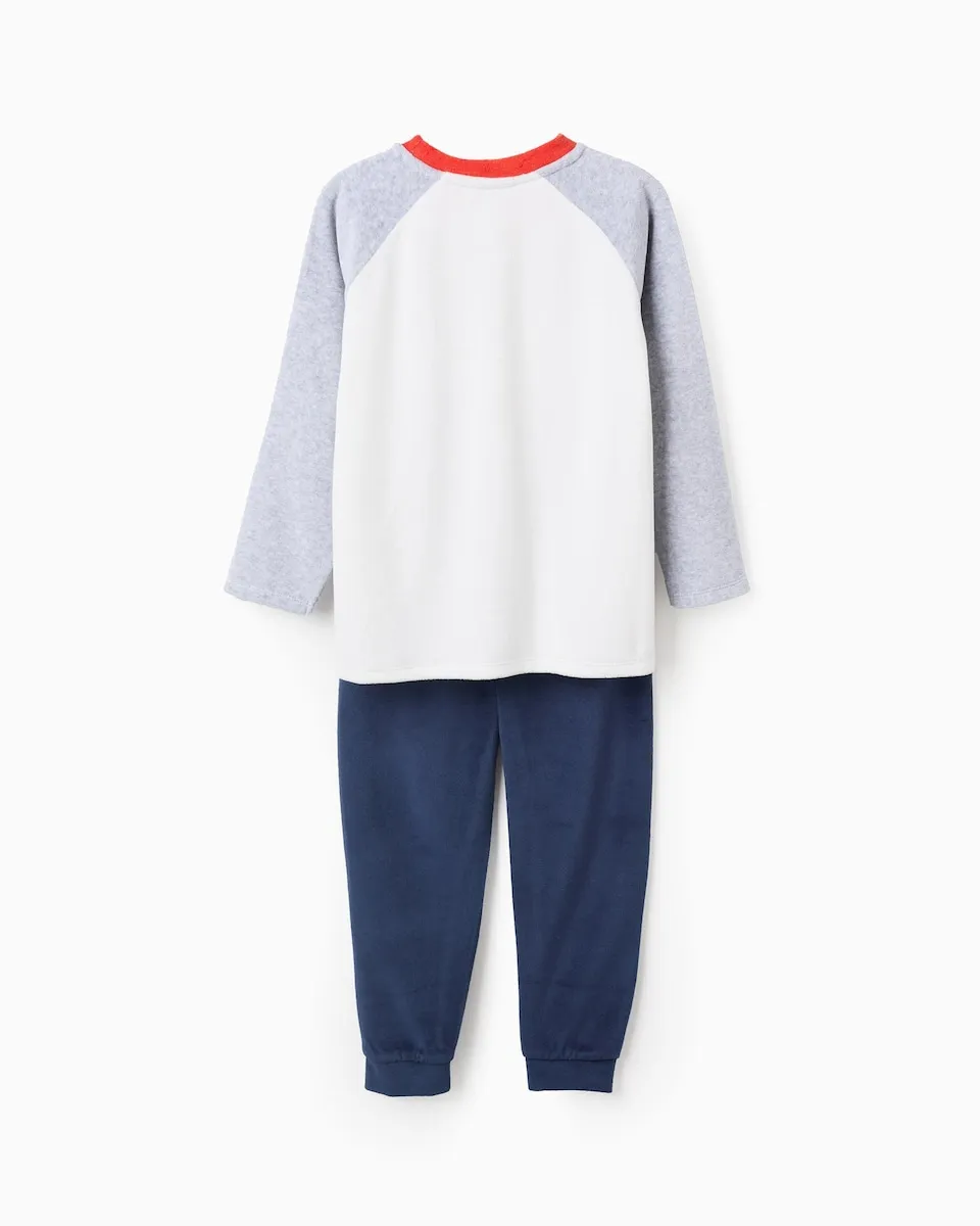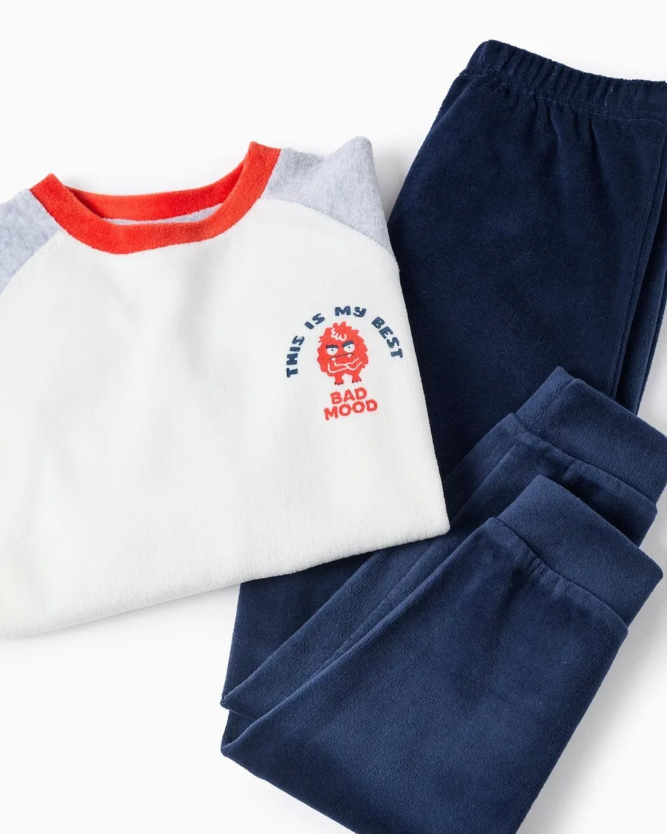 Темно-синий, белый и серый бархатный пижама для мальчика, гарантирующая повышенный термический комфорт. Белая и серо-контрастная футболка с красным воротником, сочетающаяся с маленьким ироничным принтом монстра гнева. Темно-синие брюки без рисунка с зауженными манжетами для идеальной посадки. Напечатанные внутренние этикетки, чтобы не раздражать кожу. Уютный и веселый пижама, способствующий тому, чтобы дети начали говорить о своих чувствах с раннего возраста. С рельефной собачкой на манжете, Зиггом, чтобы дети никогда не чувствовали себя одинокими ночью, способствуя их автономии и эмоциональной саморегуляции.