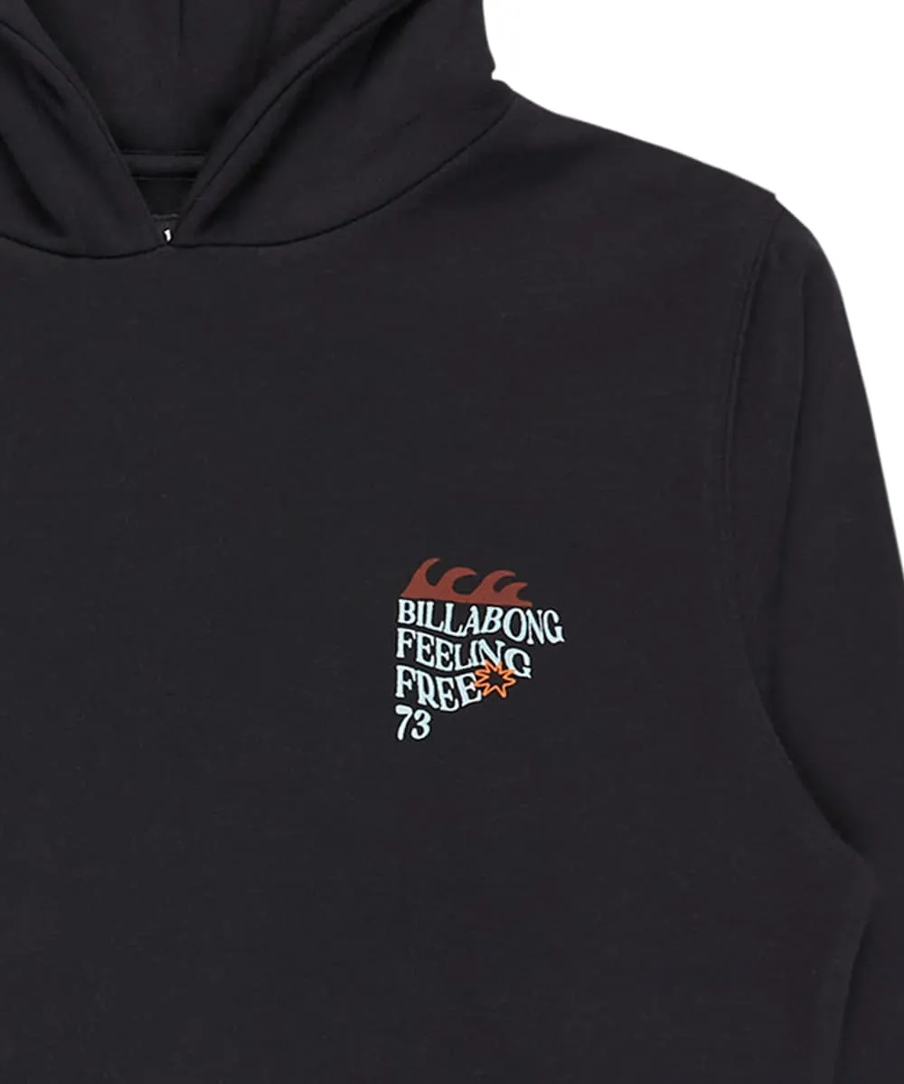 Толстовка с капюшоном для детей 8-16 лет. Особенности включают: Ткань: смесь переработанного хлопка и полиэстера 280 г/м², шелкография на груди и спине, внутренний слой без начеса, карманы-кенгуру, изделие прошедшее стирку для большей мягкости и этикетка Billabong на боковом шве.