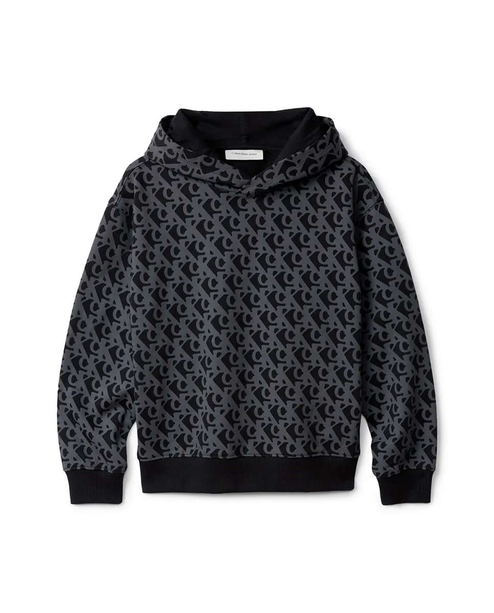 Детский свитшот, выполненный из 100% органического хлопка, с капюшоном и контрастным принтом CK.