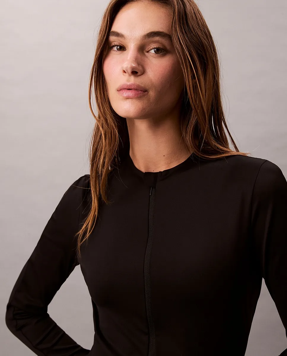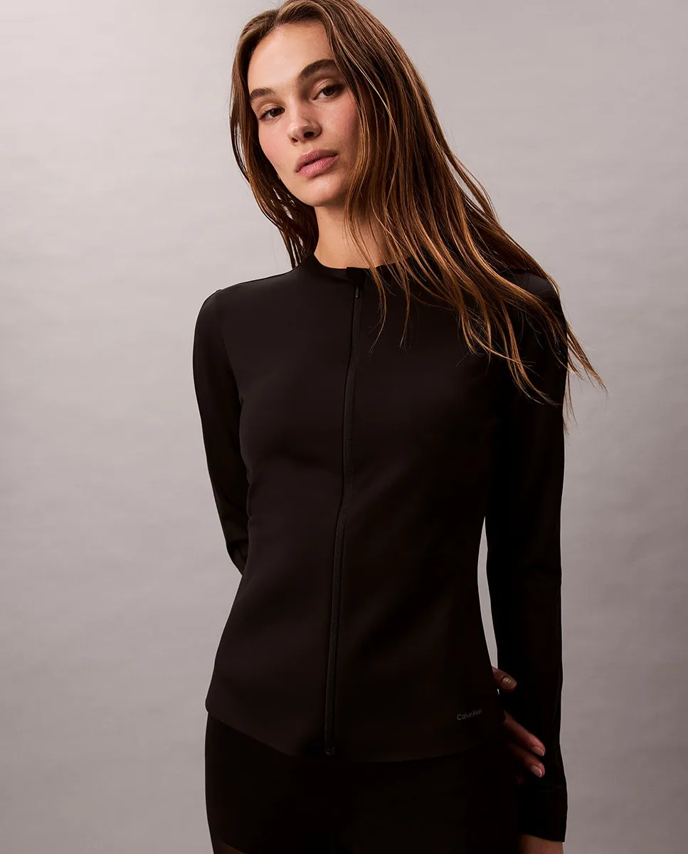 Уверенная в себе, стильная и готовая ко всему, эта универсальная коллекция CK Sport сочетает поддержку, вдохновленную одеждой shapewear, с элегантным и сексуальным дизайном. Изготовлена из высокоэффективной ткани, отводящей пот и быстро сохнущей.Особенности:- эластичная техническая ткань двойного плетения, обеспечивающая поддержку;- технология быстрого высыхания, отводящая пот;- формирующая и плотная талия, которая остается на месте;- застежка-молния;- подол и манжеты с необработанным краем без швов;- манжеты с отверстием для большого пальца, чтобы рукава оставались на месте;- логотип Calvin Klein в тон бедра.Форма и посадка:- спортивный крой;- специальная поддержка живота;- приталенные панели на талии;- до талии;- высокий круглый ворот;- длинные рукава.Состав и уход:- 60% нейлон и 40% эластан;- закрывать все застежки, стирать с похожими цветами.
