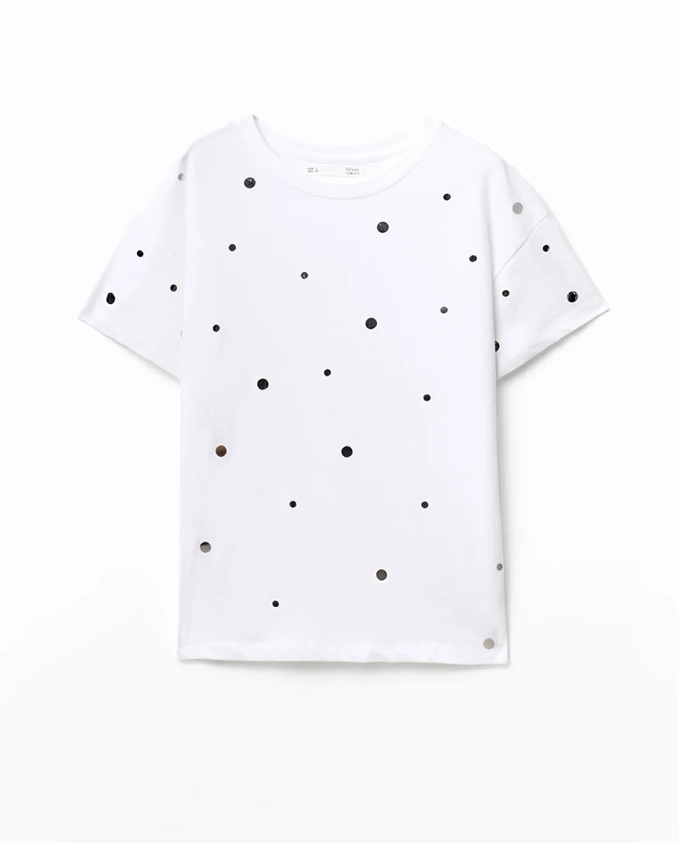 Футболка с коротким рукавом с деталями из кристаллов. 100% хлопок.