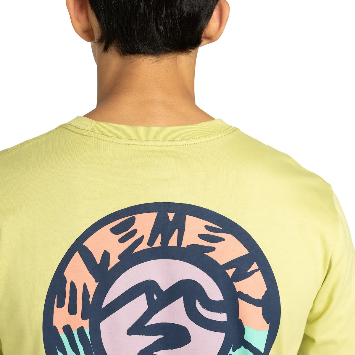 Футболка с коротким рукавом для мужчин. Характеристики включают: Conscious by Nature: органический хлопок, простой трикотаж, плотность ткани: 180 г/м², посадка: обычная, воротник: круглый, техника печати: печать на водной основе, расположение принта: принт на груди и спине, прямоугольная фирменная бирка на шве.