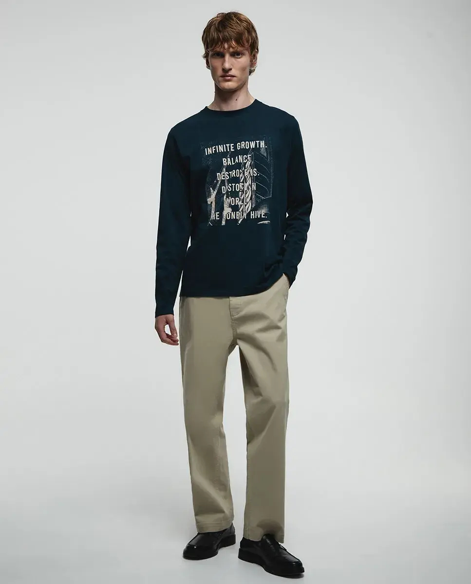 Футболка с длинными рукавами с принтом и круглым вырезом. 100% хлопок