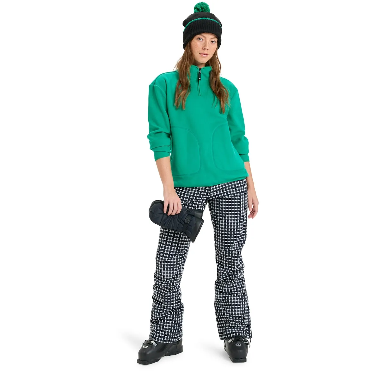 Техническая футболка для женщин. Характеристики включают: Технология: технология ROXY WarmFlight сочетает в себе отличное удержание тепла с высокой воздухопроницаемостью, низким весом и максимальным комфортом., Крой: обычный, классический крой для свободного движения и максимального комфорта, ЭКОЛОГИЧЕСКИЕ ДЕЙСТВИЯ: изготовлено из переработанных волокон [*процент относится к весу переработанного содержания по отношению к общему весу ткани изделия]., Ткань: флисовый полиэстер из переработанных материалов, Доступ с половинной молнией, Два кармана для согревания рук на молнии и Манжеты из лайкры с отверстием для большого пальца.