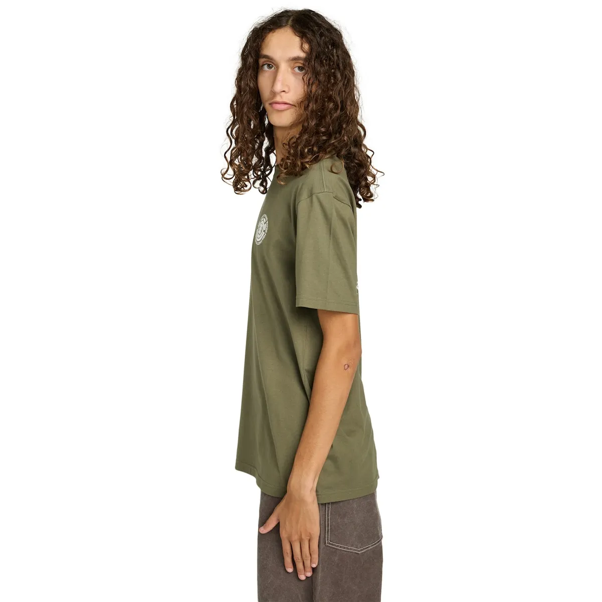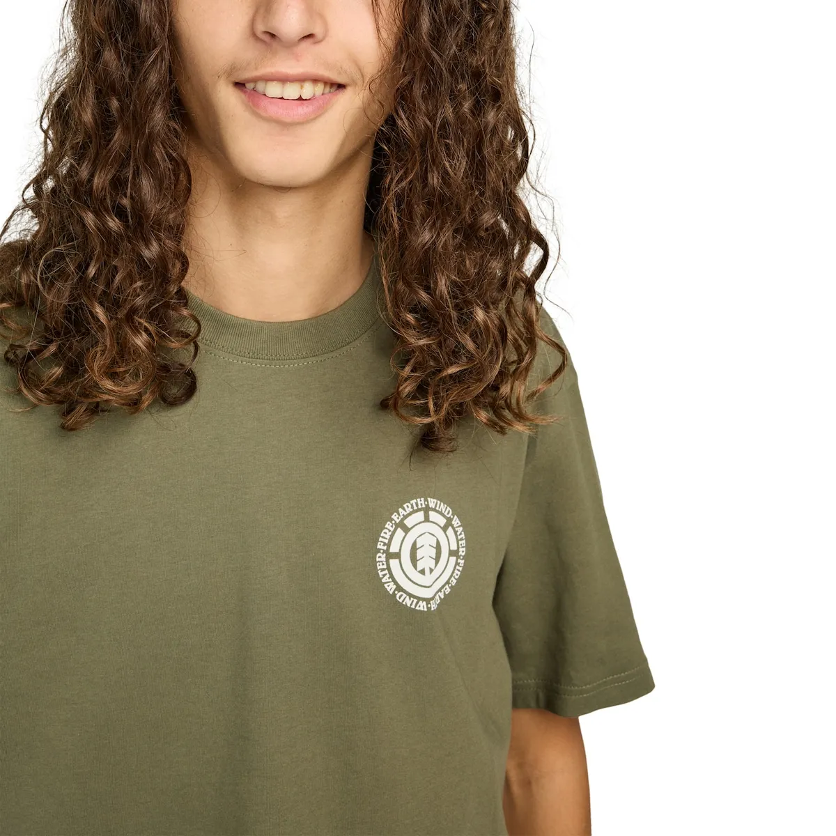 Футболка с коротким рукавом для мужчин. Характеристики включают: Conscious by Nature: органический хлопок, простой трикотаж, плотность ткани: [180 г/м²], посадка: обычная, воротник: круглый, техника печати: печать на водной основе, расположение принта: принт на груди и спине, прямоугольная фирменная бирка на шве.