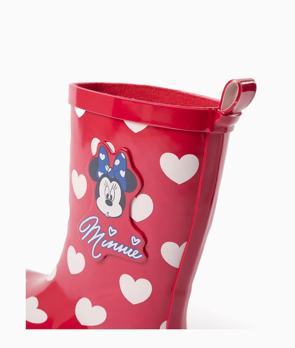 Ботинки для девочек с мотивом Минни. Красные детские резиновые сапожки для девочек с узором из белых сердечек и рельефным изображением Минни сбоку. Внутренняя часть из ткани для лучшей воздухопроницаемости и комфорта. Противоскользящая подошва для большей безопасности при ходьбе. С петлей сзади для легкого надевания. Идеальная обувь для дождливых дней, чтобы держать ноги детей в комфорте и сухости. Big Me: Стельки с дизайном полукругов, чтобы ребенок легко мог определить соответствующую ногу, способствуя его самостоятельности. Материал верха: 100% Резина. Внутренний материал: 100% Текстиль. Подошва: 100% Резина.