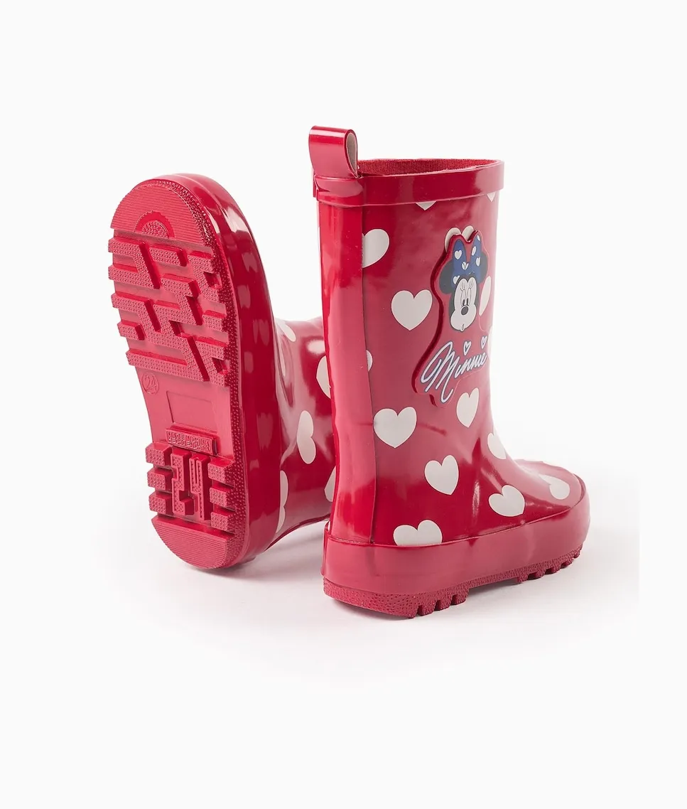 Красные резиновые сапожки для девочек, с узором из белых сердечек и рельефной деталью Минни сбоку. Внутренняя часть из ткани для лучшей вентиляции и комфорта. Противоскользящая подошва для большей безопасности при ходьбе. С задней петлей для легкого надевания. Идеальная обувь для дождливых дней, чтобы держать ноги детей в комфорте и сухости. Big Me: стельки с дизайном из полукругов, чтобы ваш ребенок легко мог определить соответствующую ногу, способствуя его самостоятельности.