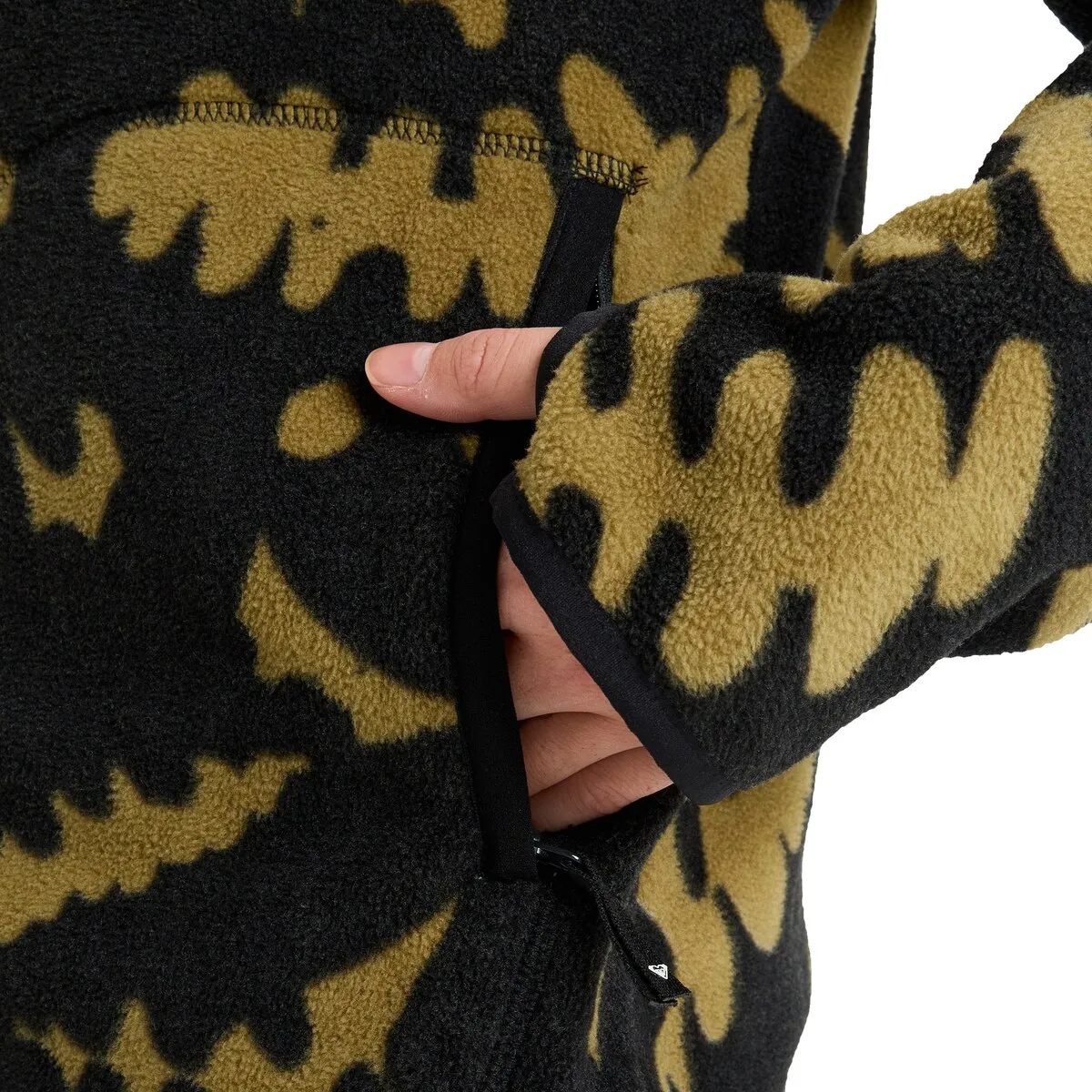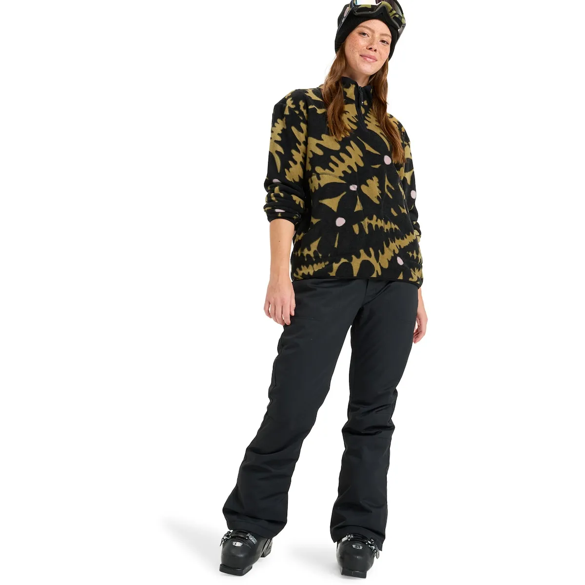 Техническая футболка для женщин. Характеристики включают: Технология: технология ROXY WarmFlight сочетает в себе отличное удержание тепла с высокой воздухопроницаемостью, низким весом и максимальным комфортом., Крой: обычный, классический крой для свободного движения и максимального комфорта, ЭКОЛОГИЧЕСКИЕ ДЕЙСТВИЯ: изготовлено из переработанных волокон [*процент относится к весу переработанного содержания по отношению к общему весу ткани изделия]., Ткань: флисовый полиэстер из переработанных материалов, Доступ с половинной молнией, Два кармана для согревания рук на молнии и Манжеты из лайкры с отверстием для большого пальца.