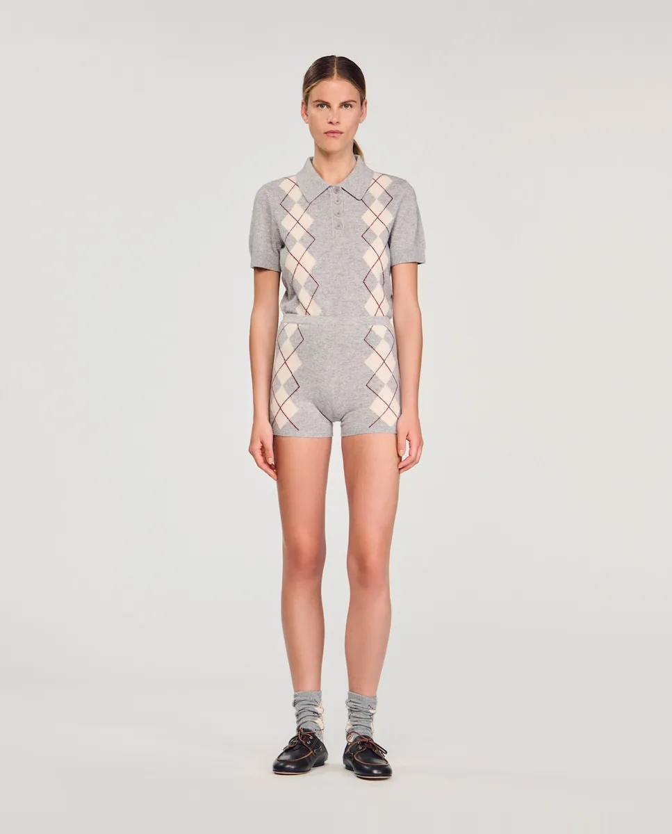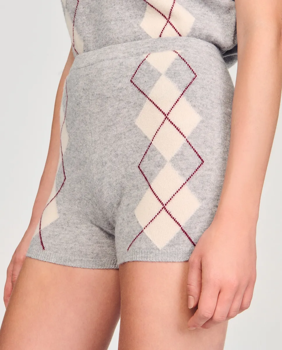 Женские вязаные шорты с ромбами Sandro, серый 15 091₽