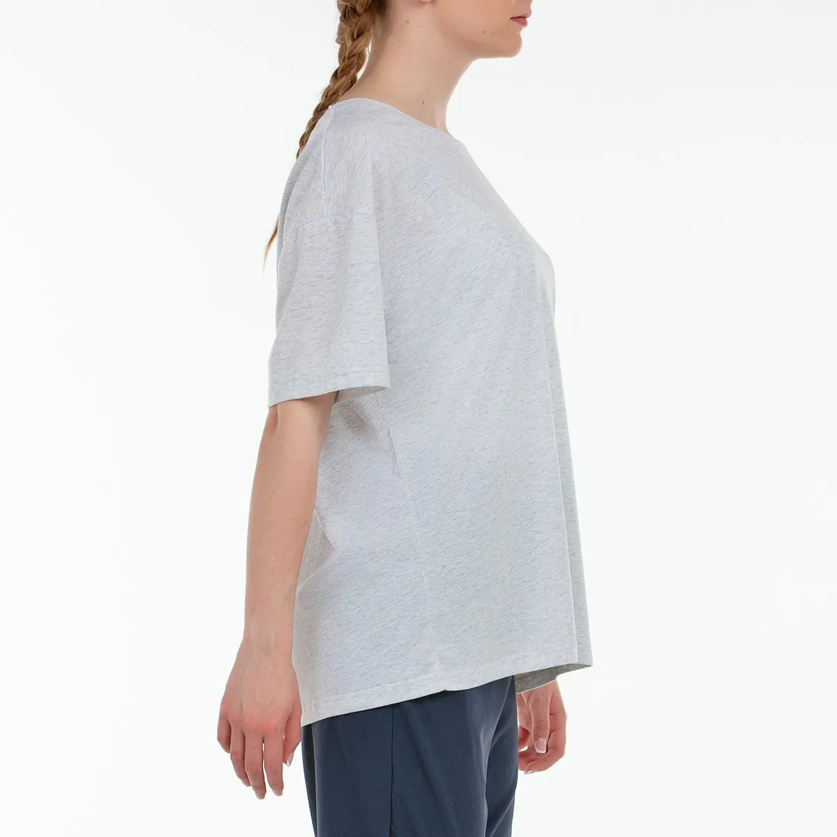 Легкая и свободная футболка из полиэстера, хлопка и вискозы. Свободная короткая футболка с коротким рукавом.