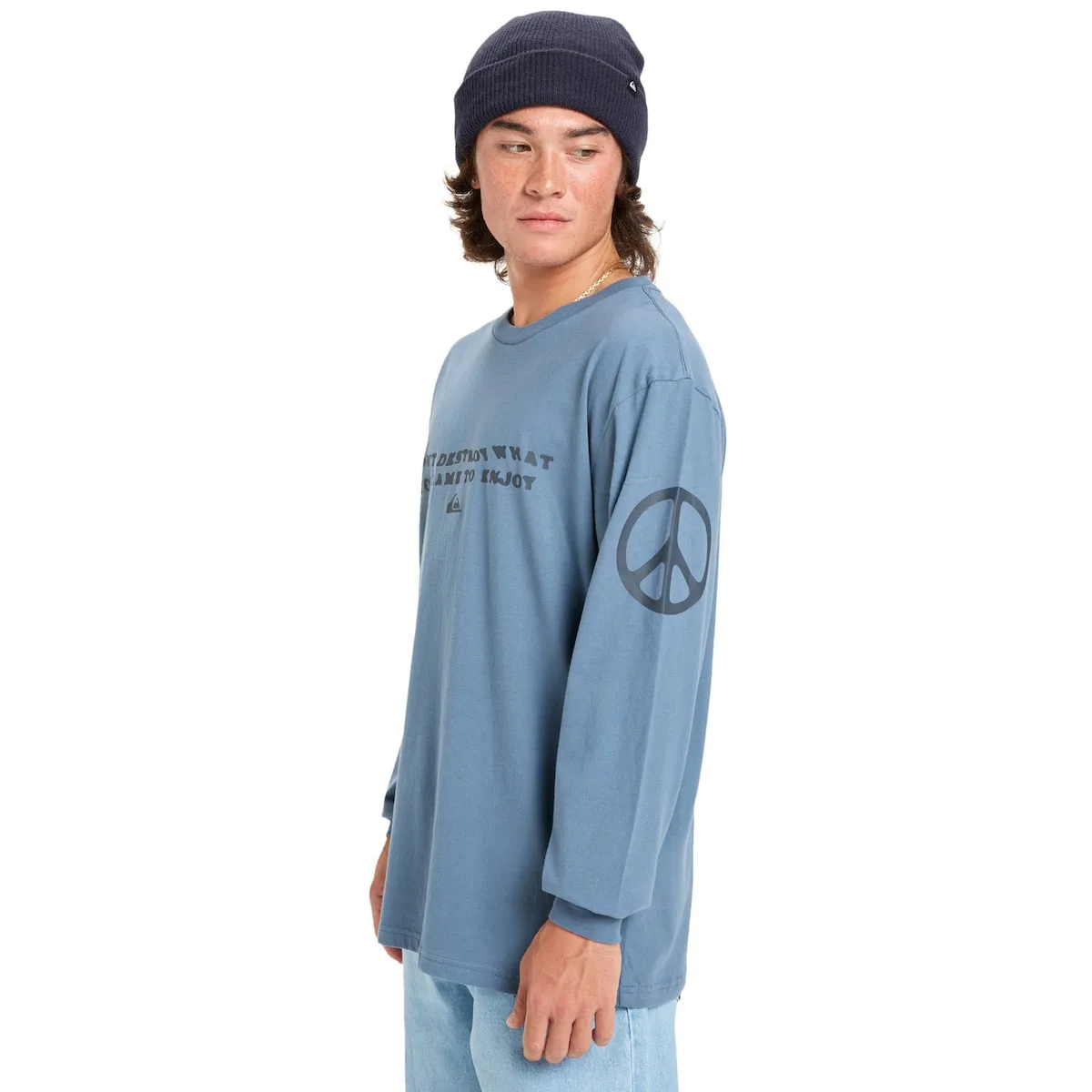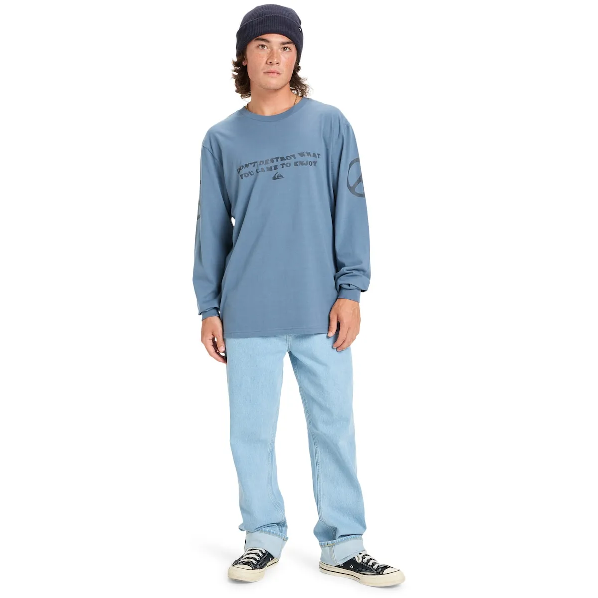 Мужская футболка с длинным рукавом. Особенности включают: Материал: хлопок, джерси из переработанного хлопка [160 г/м²], Крой: обычный, Вырез: круглый вырез, Принт на груди и рукавах и этикетка Quiksilver на подоле.