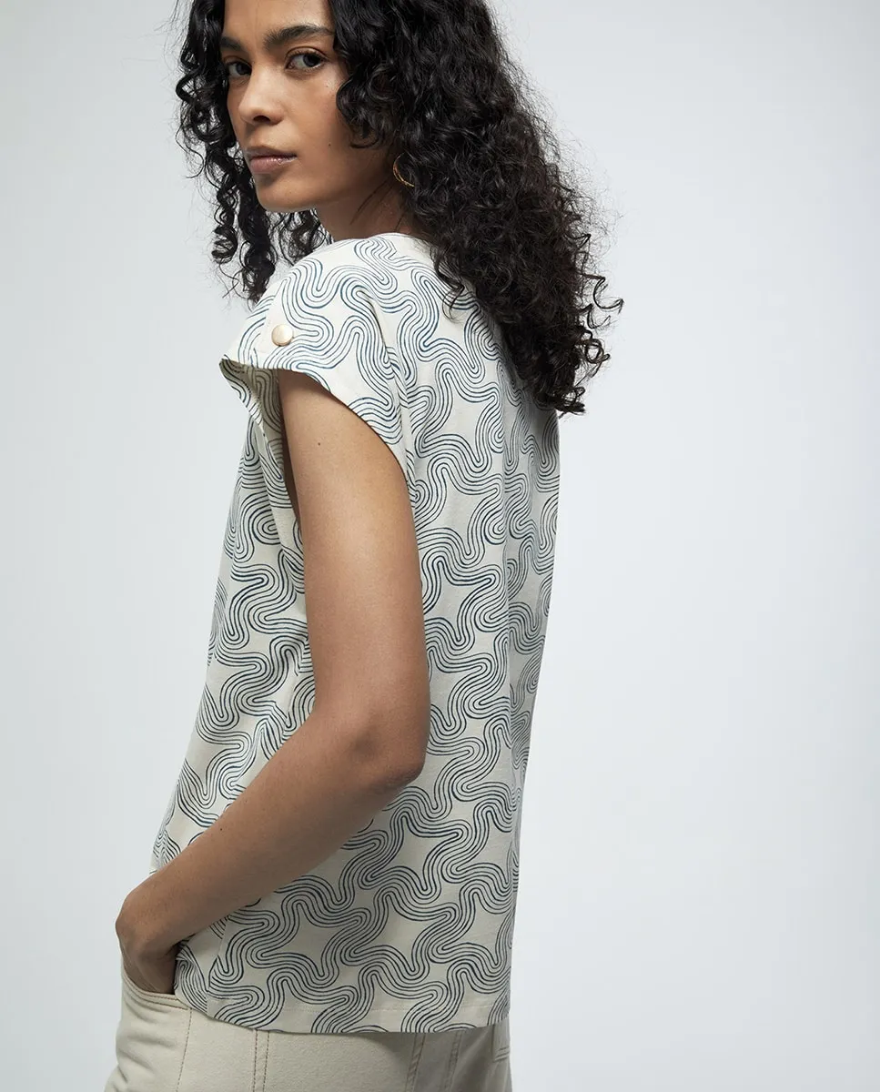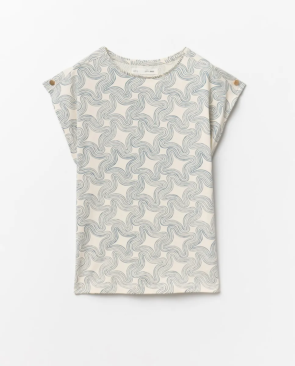 Основная футболка с короткими рукавами с принтом. 100% хлопок.