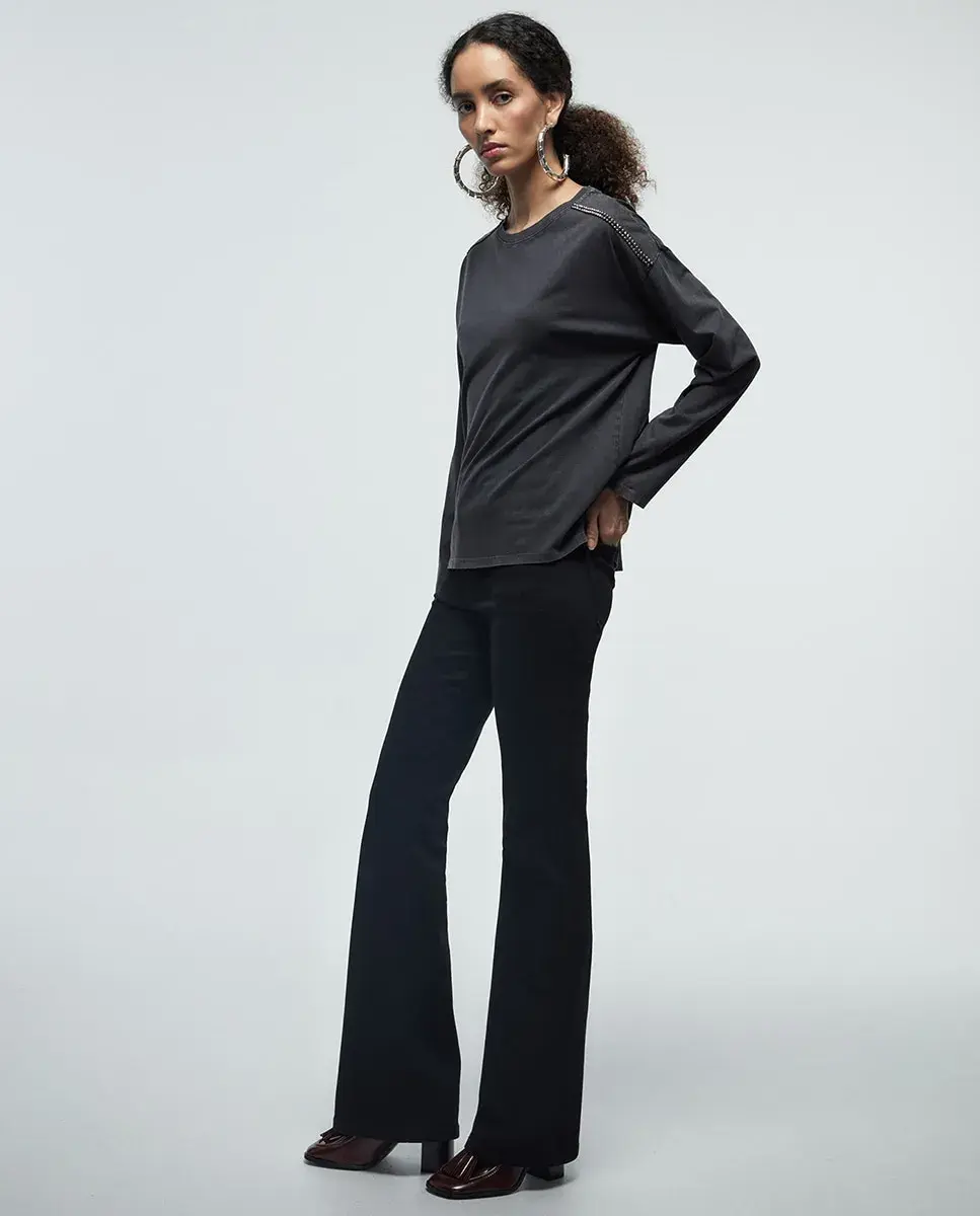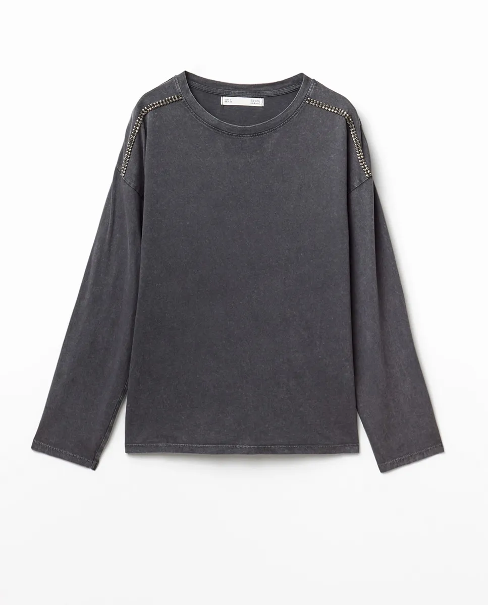 Футболка с длинным рукавом с деталями из страз. 100% хлопок