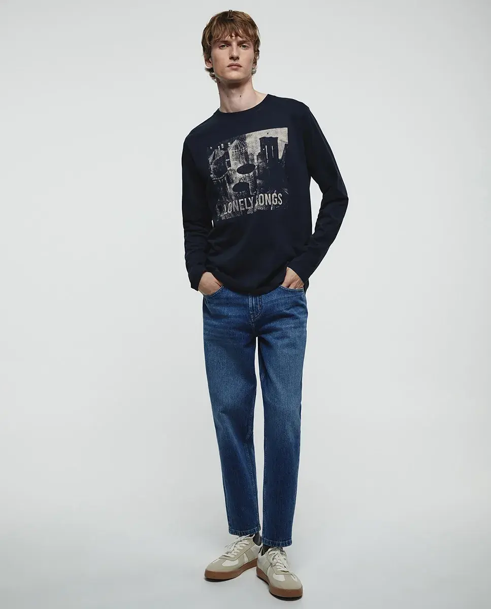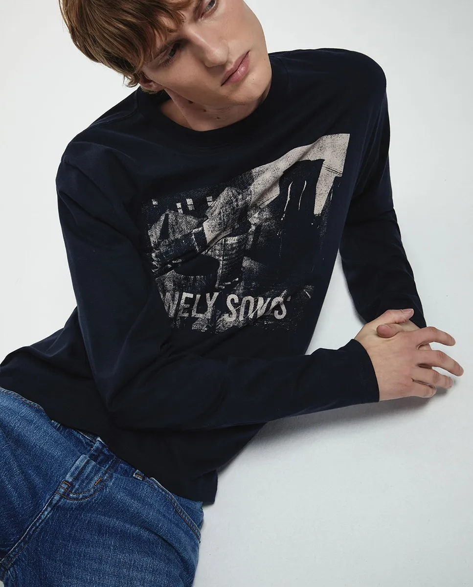 Футболка с прямым вырезом и длинными рукавами, с рисунком на передней стороне. Ткань 100% хлопок.