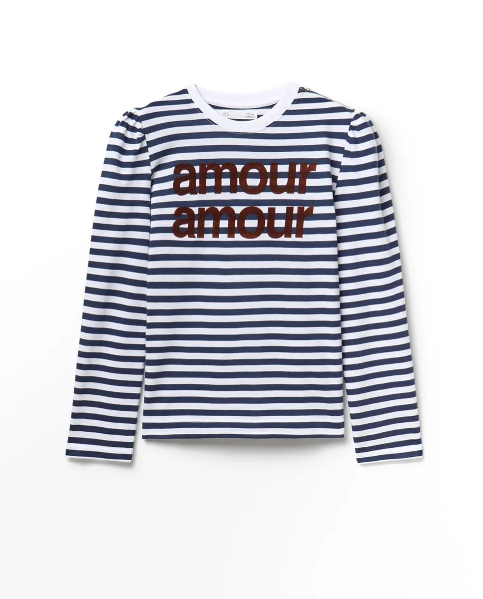 Футболка в полоску с длинными рукавами и принтованным текстом. 100% хлопок