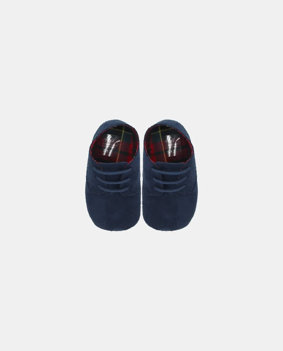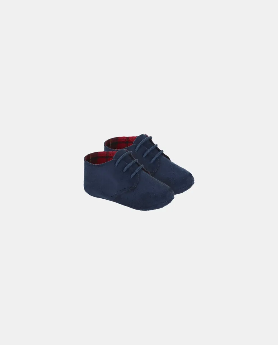 Детские бархатные туфли с клетчатым принтом и шнуровкой, темно-синего цвета. Сделано в Испании.