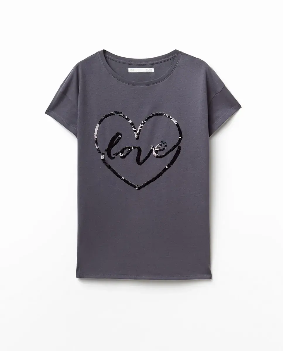 Футболка с коротким рукавом с деталями из пайеток. 100% хлопок
