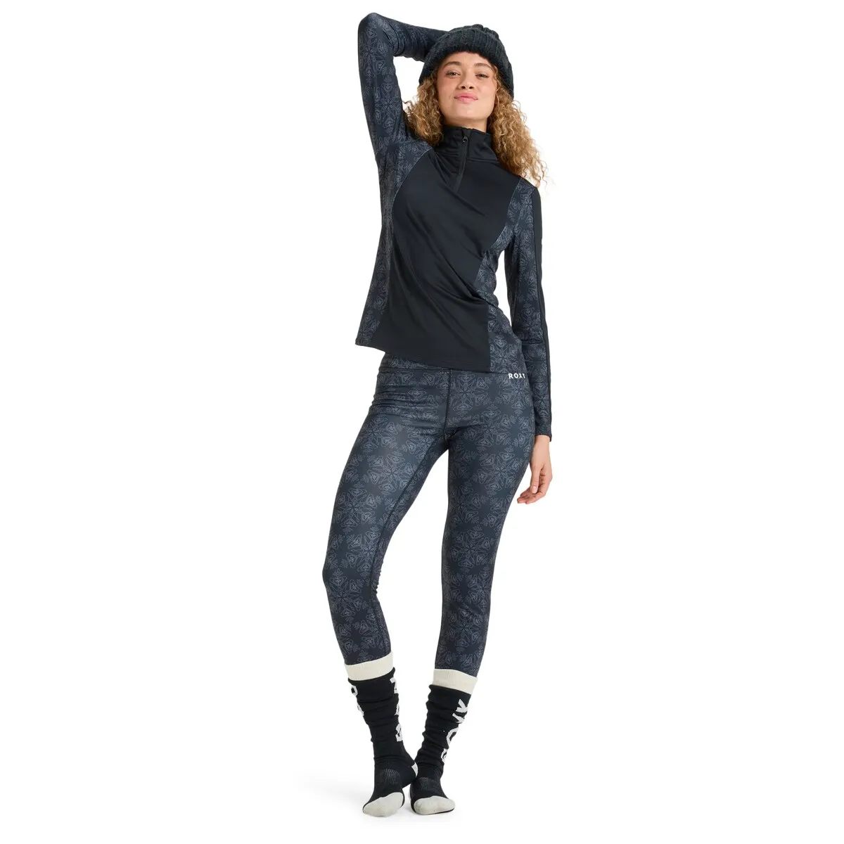 Техническая футболка для среднего слоя для женщин. Характеристики включают: Технология: технология Roxy WarmFlight для лучшего удержания тепла с воздухопроницаемостью, Крой: обтягивающий крой для легкого ношения под курткой, ЭКО-ДЕЙСТВИЯ: содержит минимум 90% переработанных волокон, Ткань: ткань из эластана и переработанного полиэстера с начесанной внутренней стороной, Плоские и эластичные швы для повышенного комфорта.