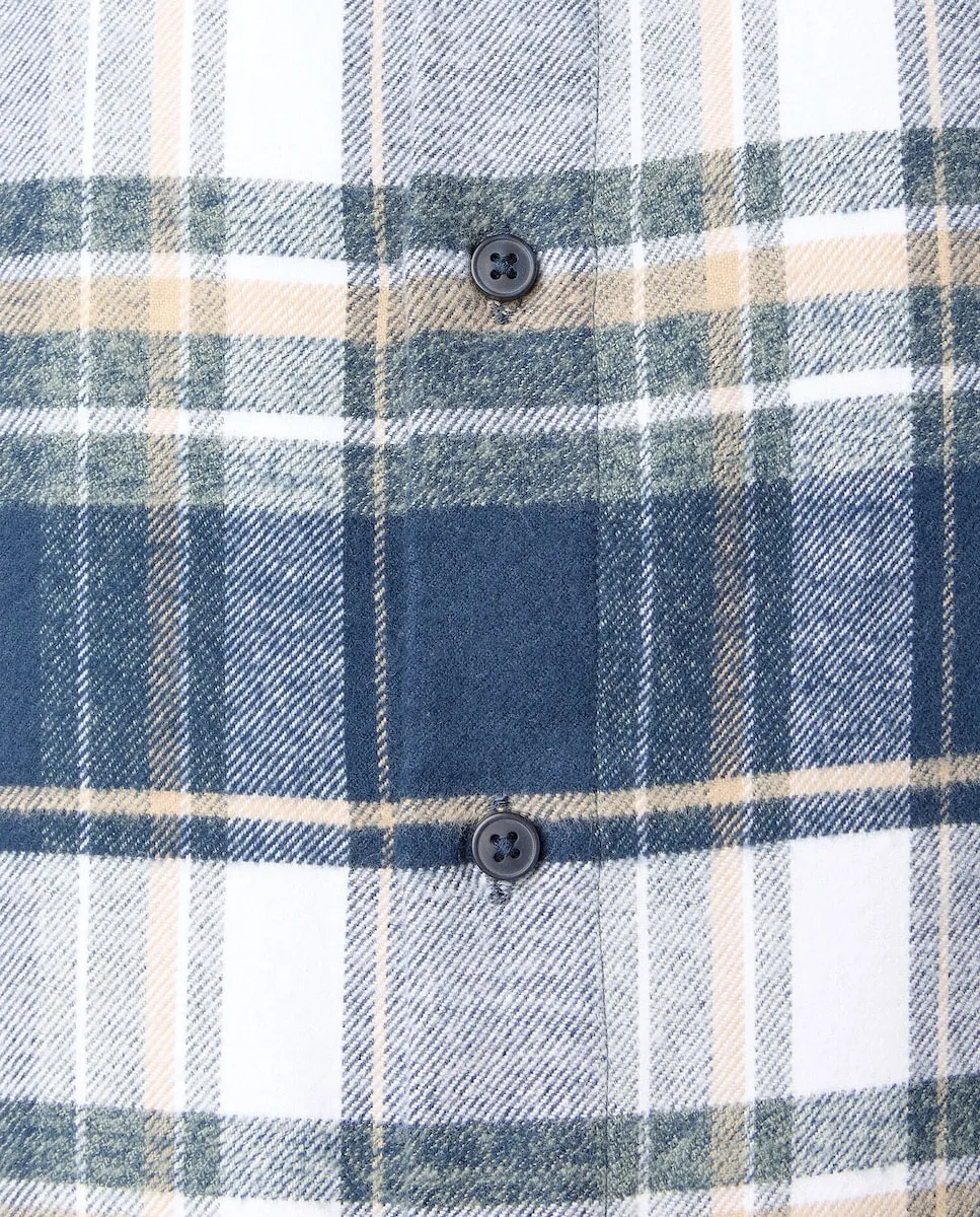 Мужская рубашка с длинными рукавами в клетку. Ткань из хлопкового фланеля. Обычный крой, воротник с пуговицей.