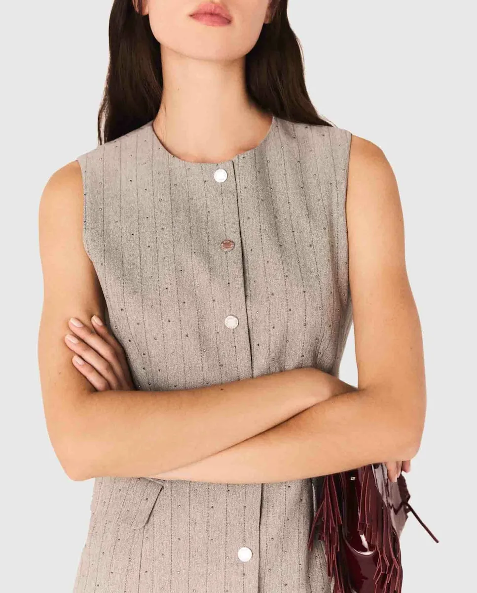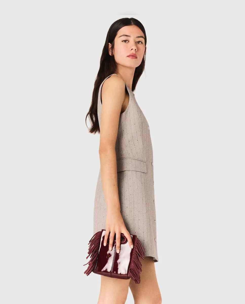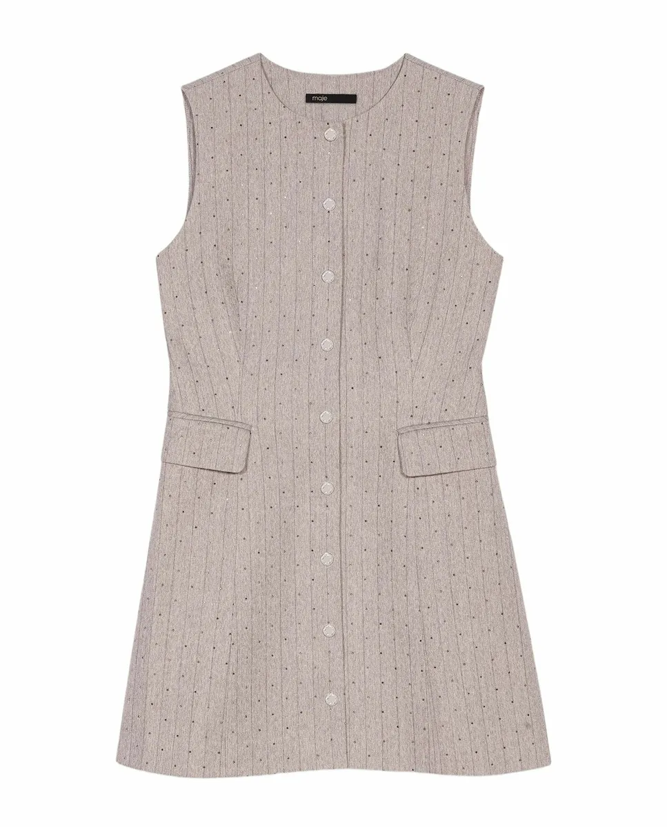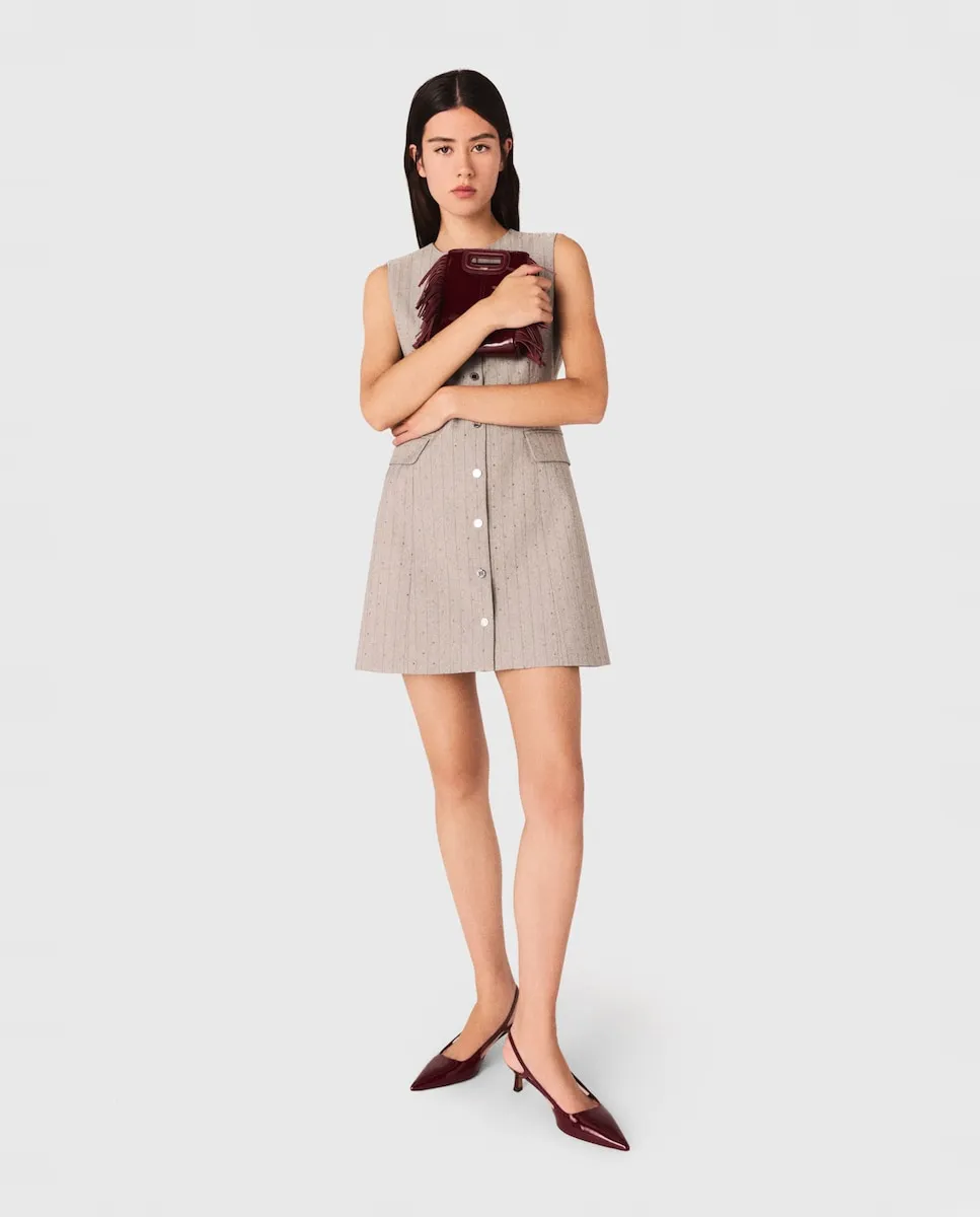Короткое платье строгого кроя со стразами Maje, бежевый