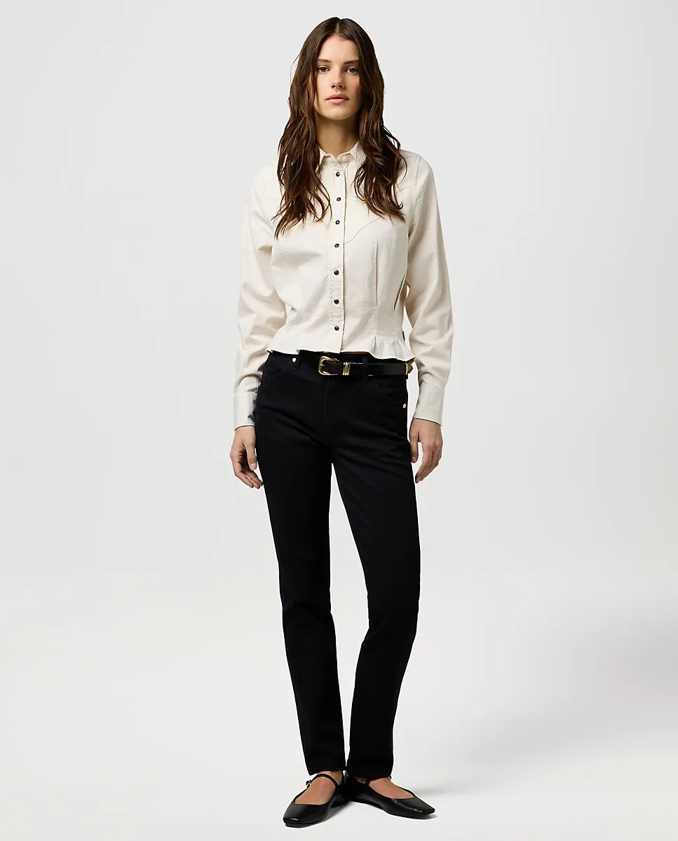 Сшитая из мягкого и дышащего хлопка, рубашка с баской Femme - это женственный дизайн с деталями вестерн-вдохновения.