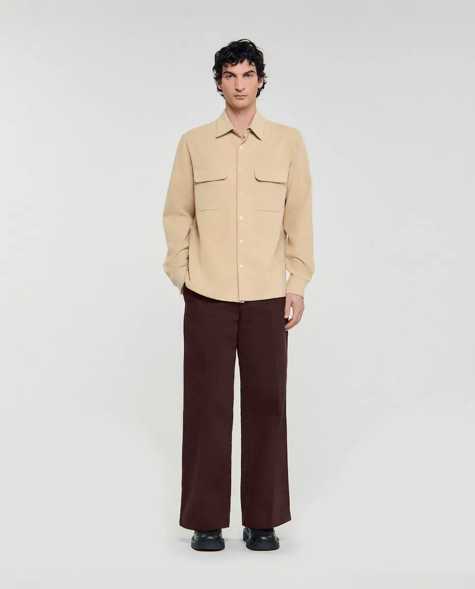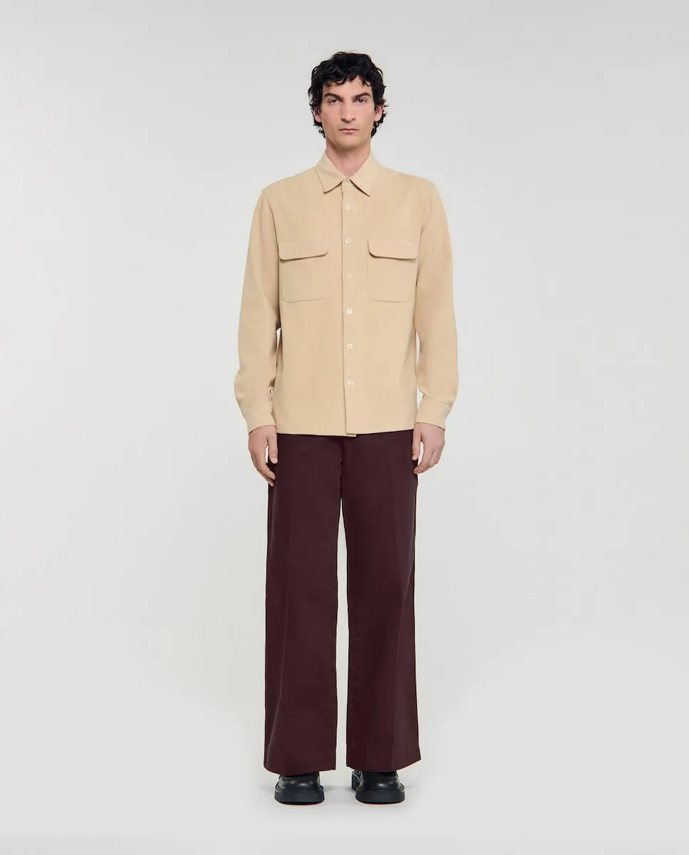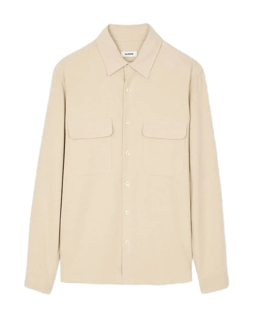 Фланелевая рубашка с французским воротником, длинными рукавами, застежкой на пуговицы и нагрудными карманами с клапанами. Мужская фланелевая рубашка Sandro. Французский воротник. Свободный крой. Длинные рукава. Застежка на пуговицы. Нагрудные карманы с клапанами.