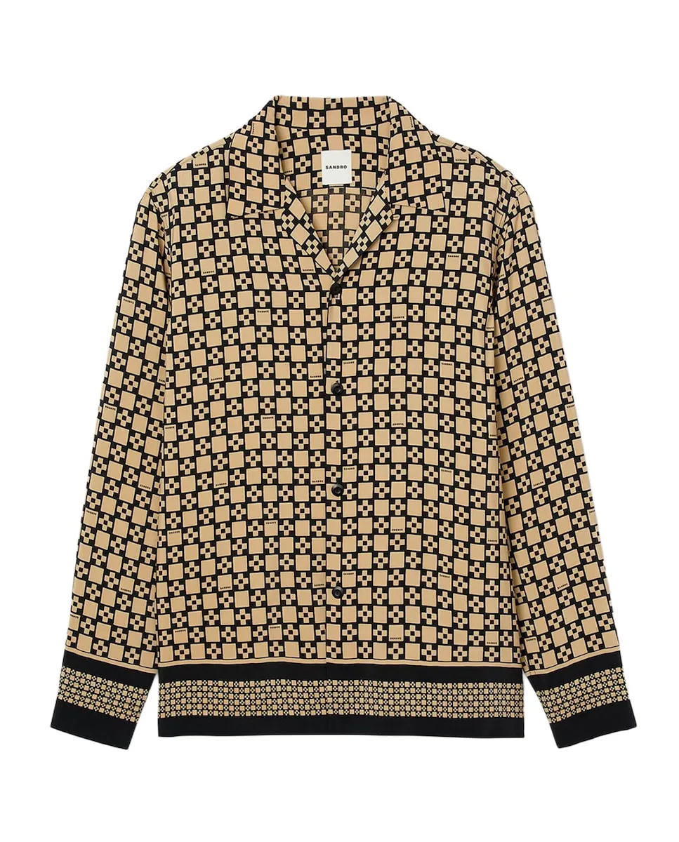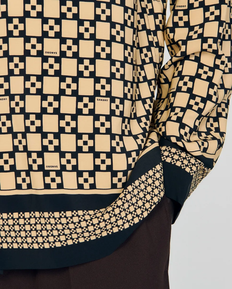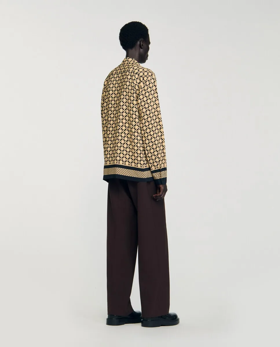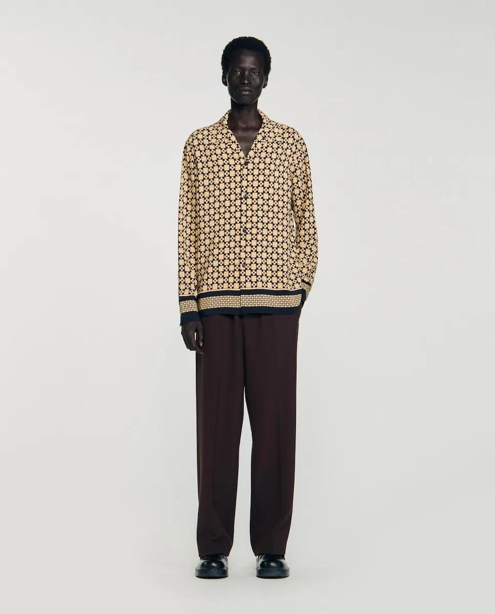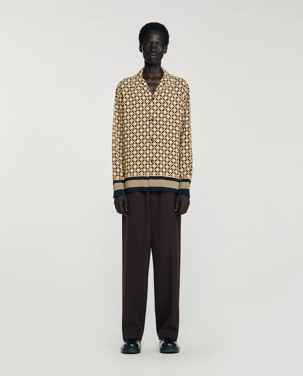 Свободная рубашка с принтом, с воротником и застежкой на пуговицы спереди. Рубашка с принтом с монограммой Sandro для мужчин. Воротник. Длинные рукава. Застежка на пуговицы спереди. Мотив с монограммой.
