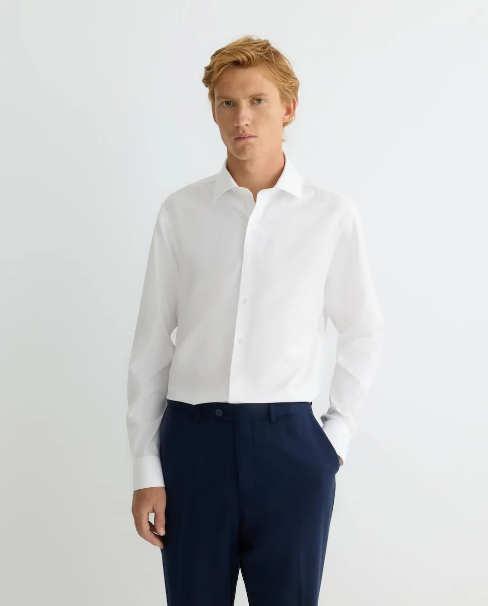 Рубашка с длинным рукавом для официальной носки, обычного кроя, 100% хлопок SUPER NON IRON-ANTIMANCHA с отделкой добби, классический воротник, комбинированные манжеты