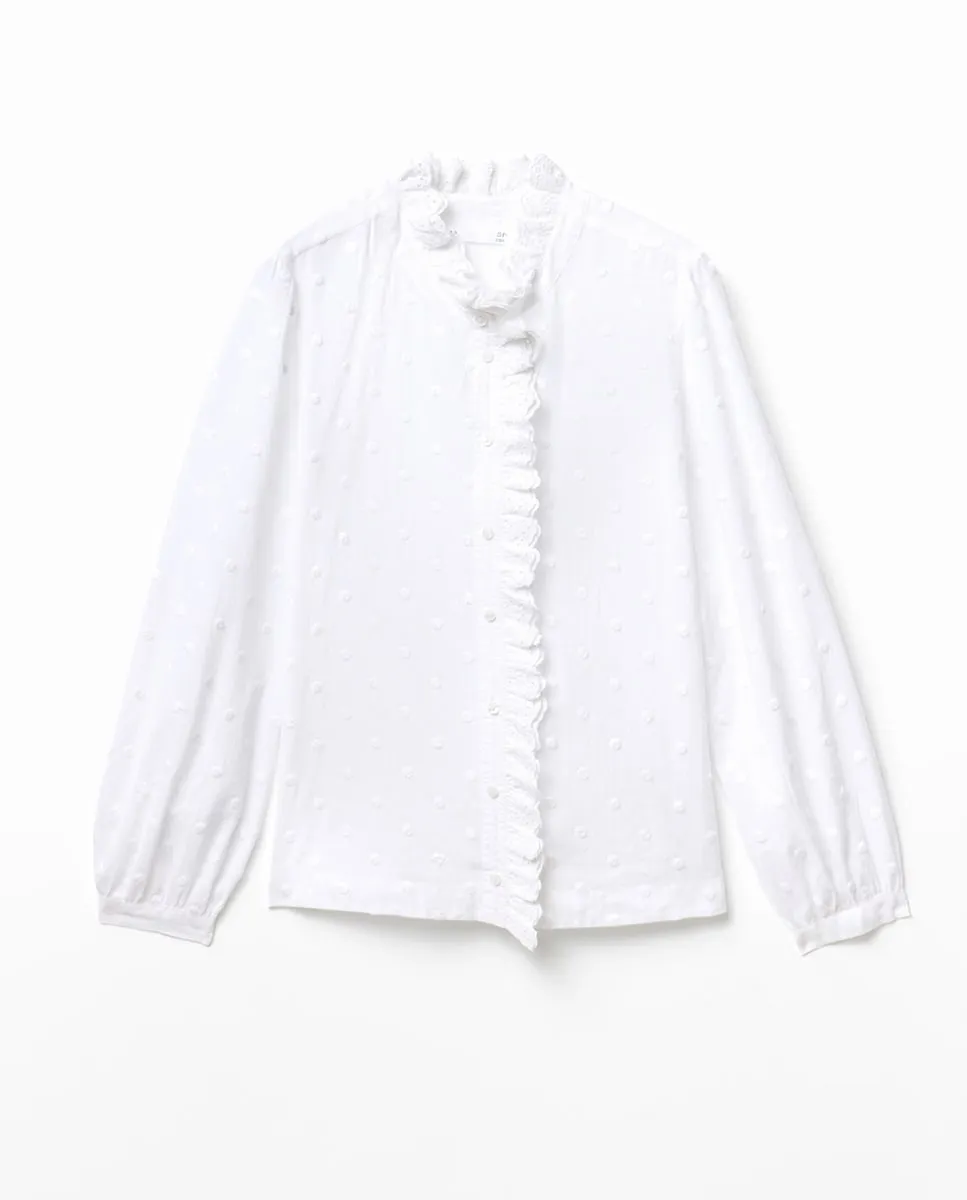 Романтичная блузка с длинными рукавами и оборками. Застежка на пуговицы. 100% хлопок