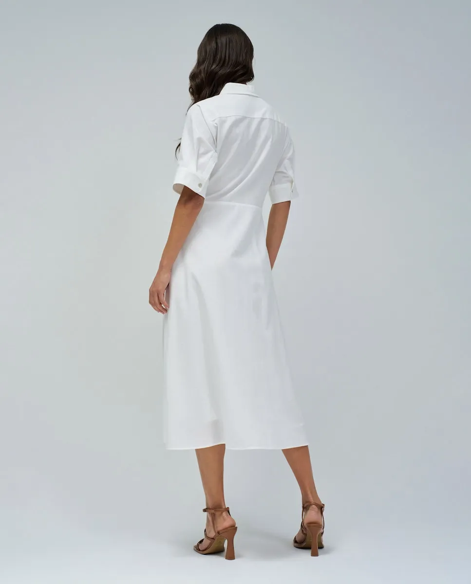 Это платье-рубашка - идеальное воплощение побега к побережью. С полосами, напоминающими колебания приливов, и тонкими декоративными элементами, сверкающими, как морская пена на солнце, оно легкое, элегантное и создано для дней, требующих спокойствия. Вырез с воротником придает структуру, а короткие рукава с пуговицами сохраняют образ расслабленным и свежим, идеально подходящим для прогулок у моря или обедов с видом на горизонт. Передняя планка с пуговицами добавляет функциональности и стиля, позволяя регулировать вырез по ситуации. С двумя практичными карманами и узлом на талии, который позволяет естественно подчеркнуть силуэт, это платье сочетает комфорт и изысканность с раскованным духом, который нам так нравится летом. Будь то спокойное утро на рынке деревни, ужин на террасе или просто замедление ритма жизни, эта вещь подходит для всех сценариев, где время замедляется, а море рядом. - Вырез с воротник - короткие рукава с пуговицей - передний разрез с пуговицами - два кармана - с завязкой на талии для регулировки. Для справки: модель ростом 1,76 м и носит размер S.