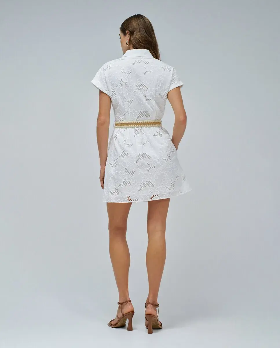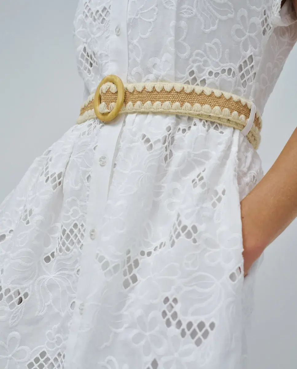 Женственное, легкое и полное очарования, это вышитое платье-рубашка - идеальный выбор для дней, когда вы хотите выглядеть красиво без усилий. Белый цвет подчеркивает деликатные детали, а пояс естественно обтягивает фигуру. Пуговицы и карманы придают образу непринужденность и универсальность. Идеально для моментов, когда простота встречается с элегантностью.- Вышитое платье-рубашка- Белый цвет- Воротник-рубашка- Короткие рукава- Передняя застежка на пуговицы- Два кармана- Съемный поясДля справки: модель ростом 1,75 м и носит размер S.