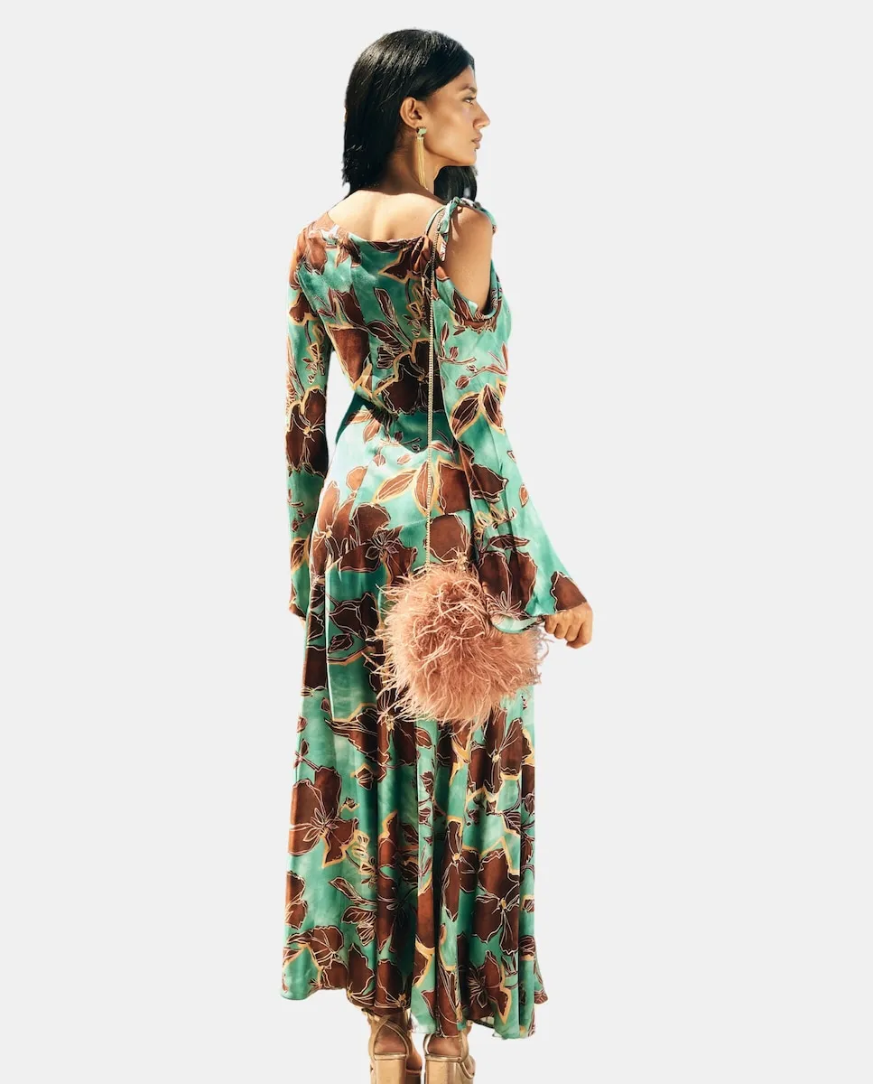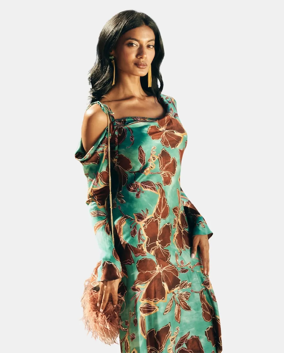 Платье миди с принтом и открытыми плечами MIPHAI, бирюзовый