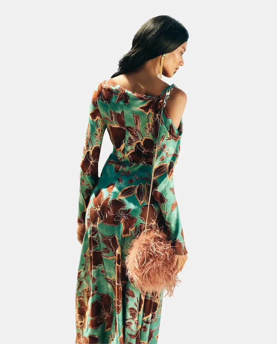 Платье миди с принтом и открытыми плечами MIPHAI, бирюзовый 17 724₽
