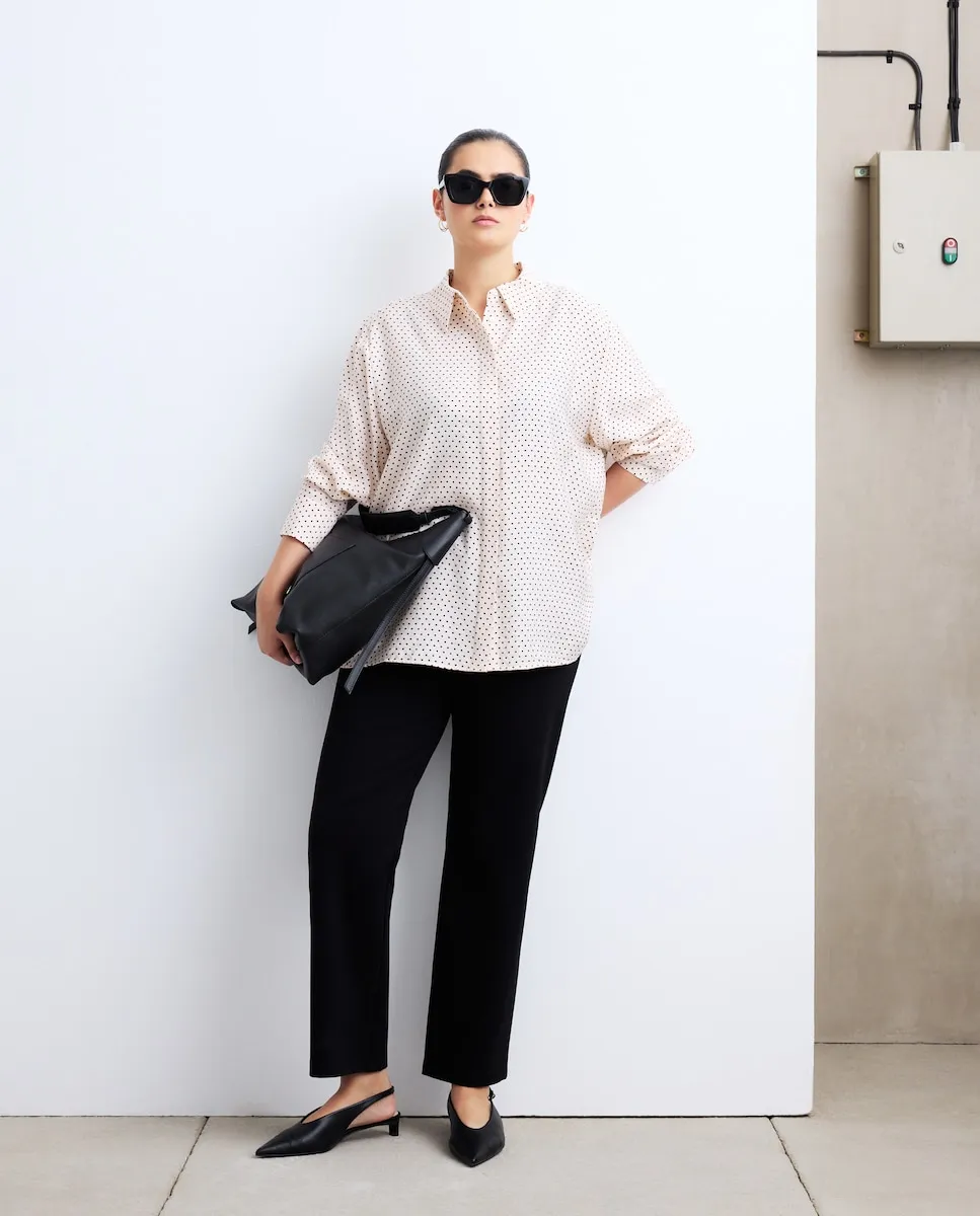 Блузка с длинным рукавом в виде пуловера с узором в горох.
