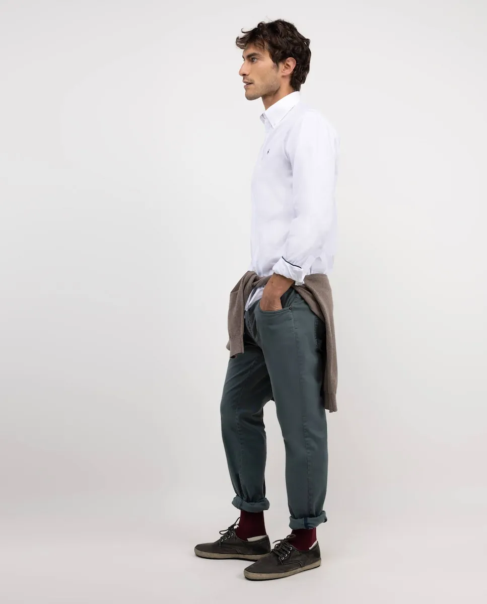 Мужская рубашка из смеси хлопка и льна с однотонным дизайном. Приталенный силуэт с вышитым логотипом.