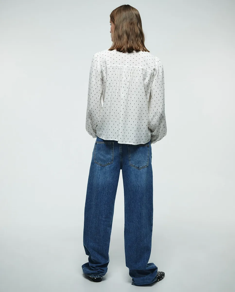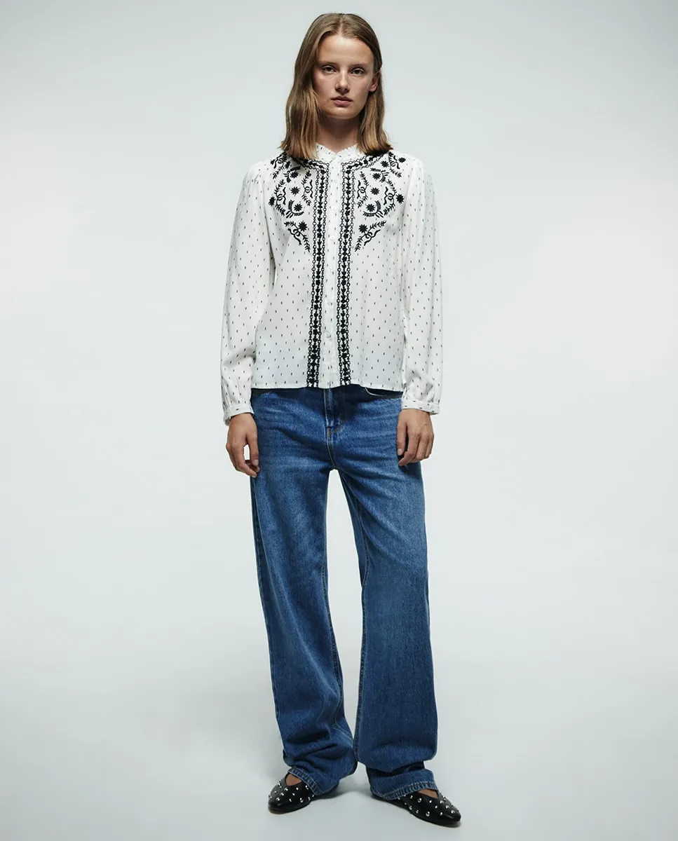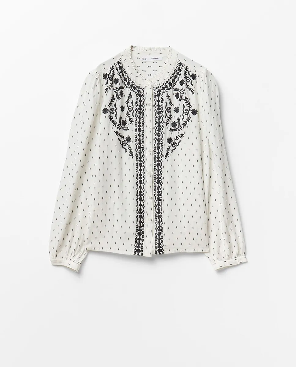 Блузка с длинным рукавом, с вышивкой на груди и застежкой на пуговицы