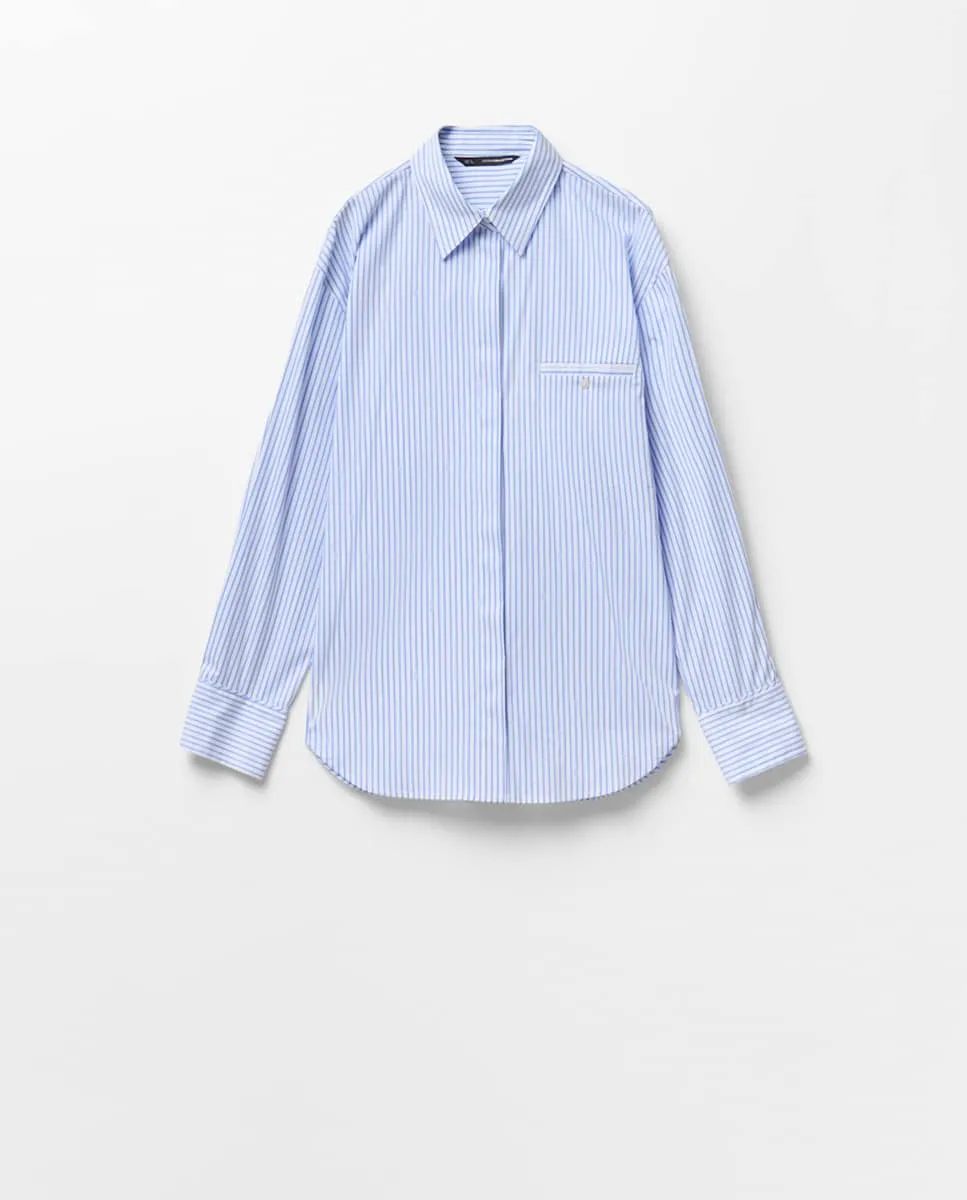 Рубашка в полоску с принтом и карманом. 100% хлопок