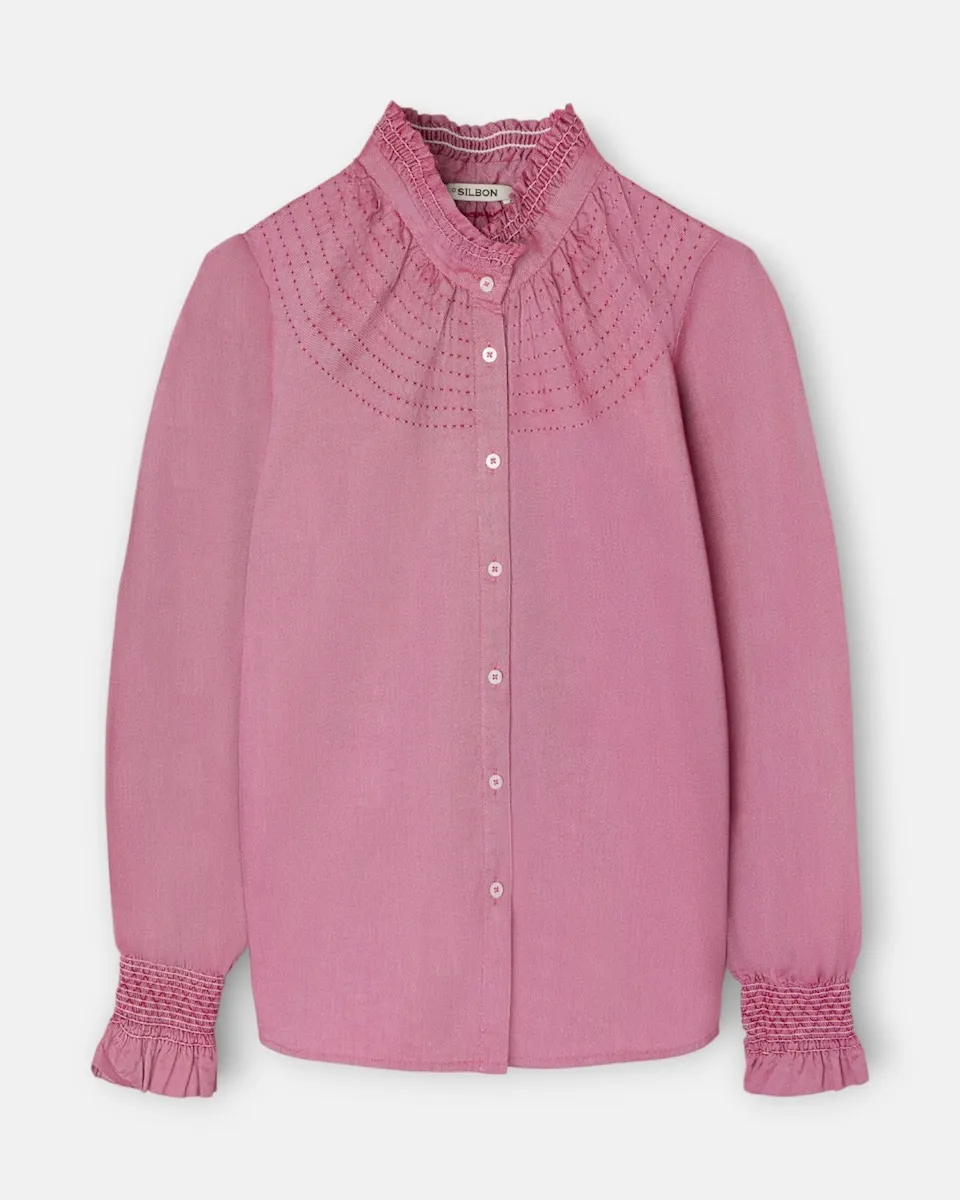 Женская рубашка с манжетами-сборками Silbon, бордовый